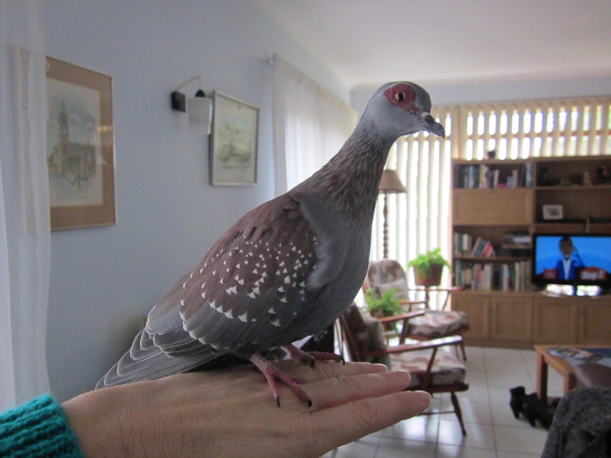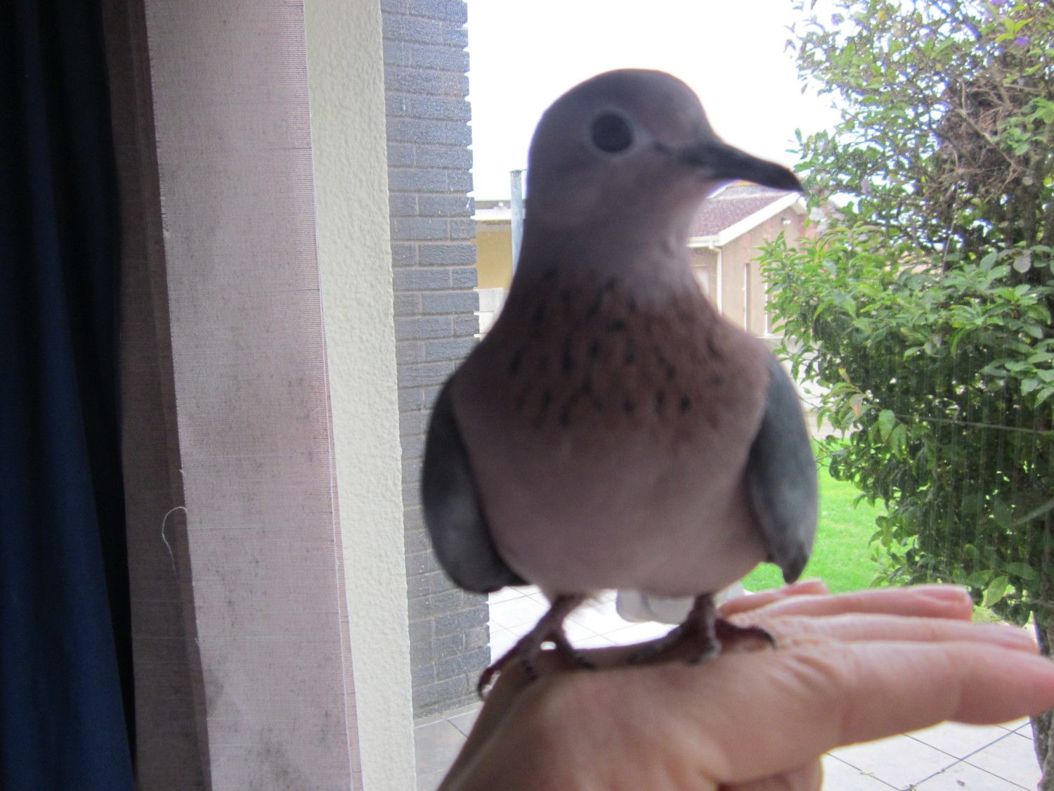 I did a better job with Pidgey, the Rock Pigeon. he was also hand reared, but I was able to release him. He comes home every evening between 17:00 and 16:00 if the back door is open though and roosts on top of the kitchen cupboard. If I'm late he waits for me at the front gate. I can still carry him on my wrist, but he bites and growls at me. I'm hoping he'll find a mate and they'll nest close enough for me to see his chicks grow up.