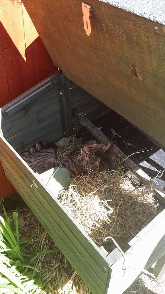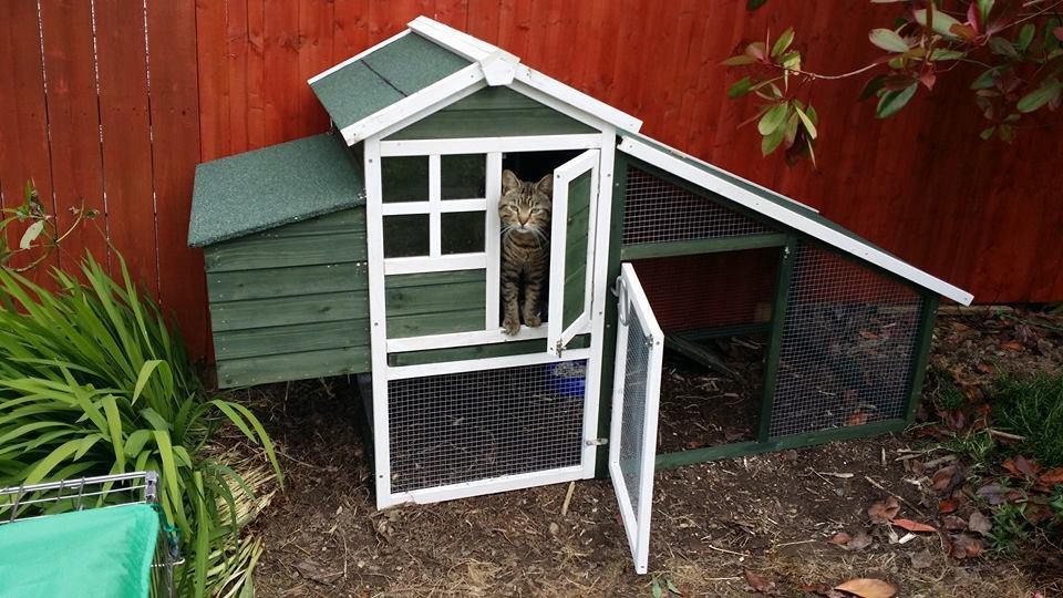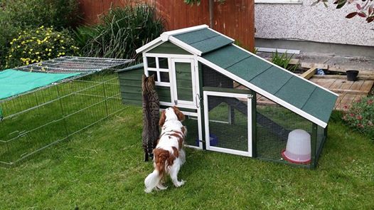 My dog is beginning to learn the chickens are MINE and not to go at... my cat is still delighted with them as you can see by the photos.