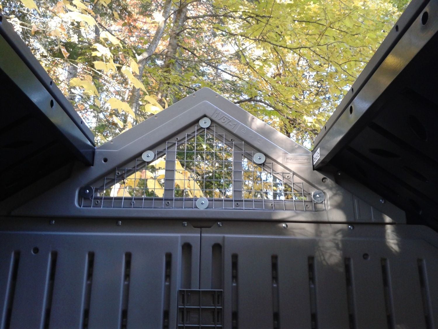 We put a grate over the window in place of the plexi-glass because there was no ridge vent. We will cover the vent in burlap in winter to keep snow from blowing in.