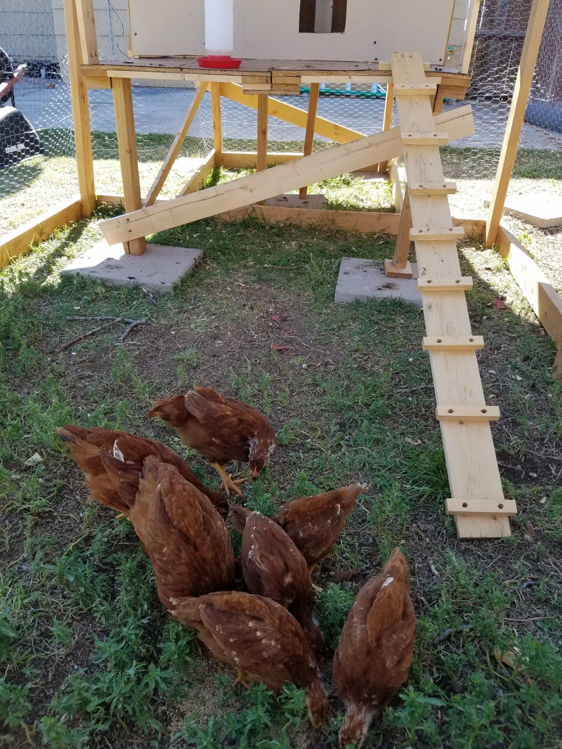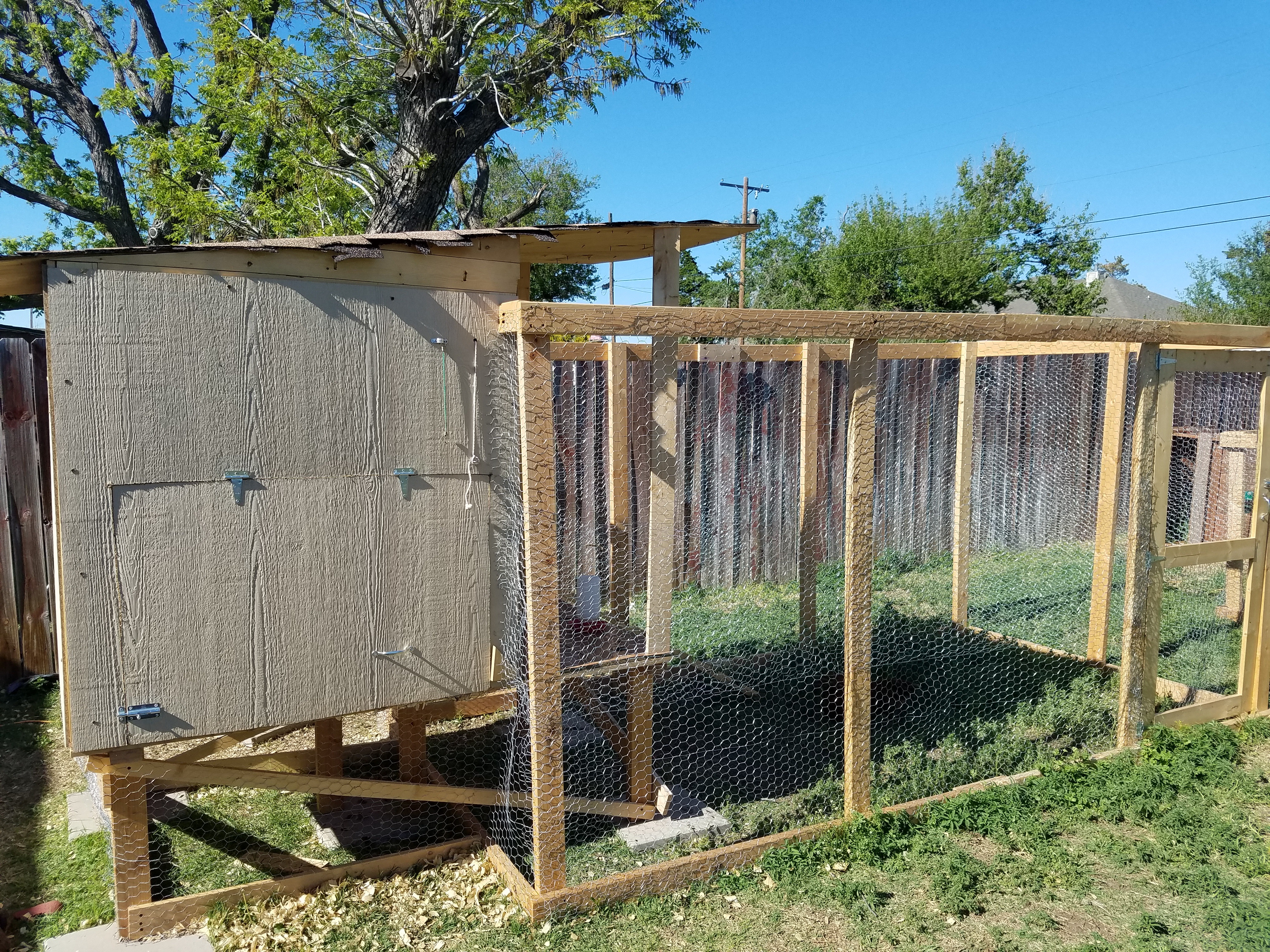 As you can see my building is defiantly not the best quality, but it is very sturdy and my kids have loved climbing all over it lol! I am thoroughly enjoying my chickens and my kids and I are so excited for eggs. I know that over time I will continue to make this coop worthier but I this is where I am and what I have to work with while I learn. I still haven't got my watering or feeding system done. We live in the Texas panhandle where the summers can get above 100 degrees and below freezing in the winter. It is also nothing for the wind to get up to 40 mph winds in any season. My coop is built by mainly things I already had around or people gave me. I have attached a few pictures. I have 7 chickens. The run is 12x8 and the coop is a 4x4 cube that is 2 feet off the ground. I did that for several reasons. I just wanted it taller for easier cleaning and not having to bend over to clean or collect eggs. The side opens on two sides of the coop so one side is to be able to clean and the other is to collect eggs. My chickens are only about 6-7 weeks old. I have the nesting boxes turned sideways and without bedding in them so that the chickens can't get in them until they are ready to lay. The bottom in the inside has linoleum for easier cleaning. Underneath the coop is enclosed so they can go underneath for shade (We had a freak ice storm that has taken out what little trees we had. I have already discovered that I need to add more covering for shading on the run side and some perches in the run. Other than that, I would greatly appreciate any and all advice on what I need to do. Thank you so much in advance.