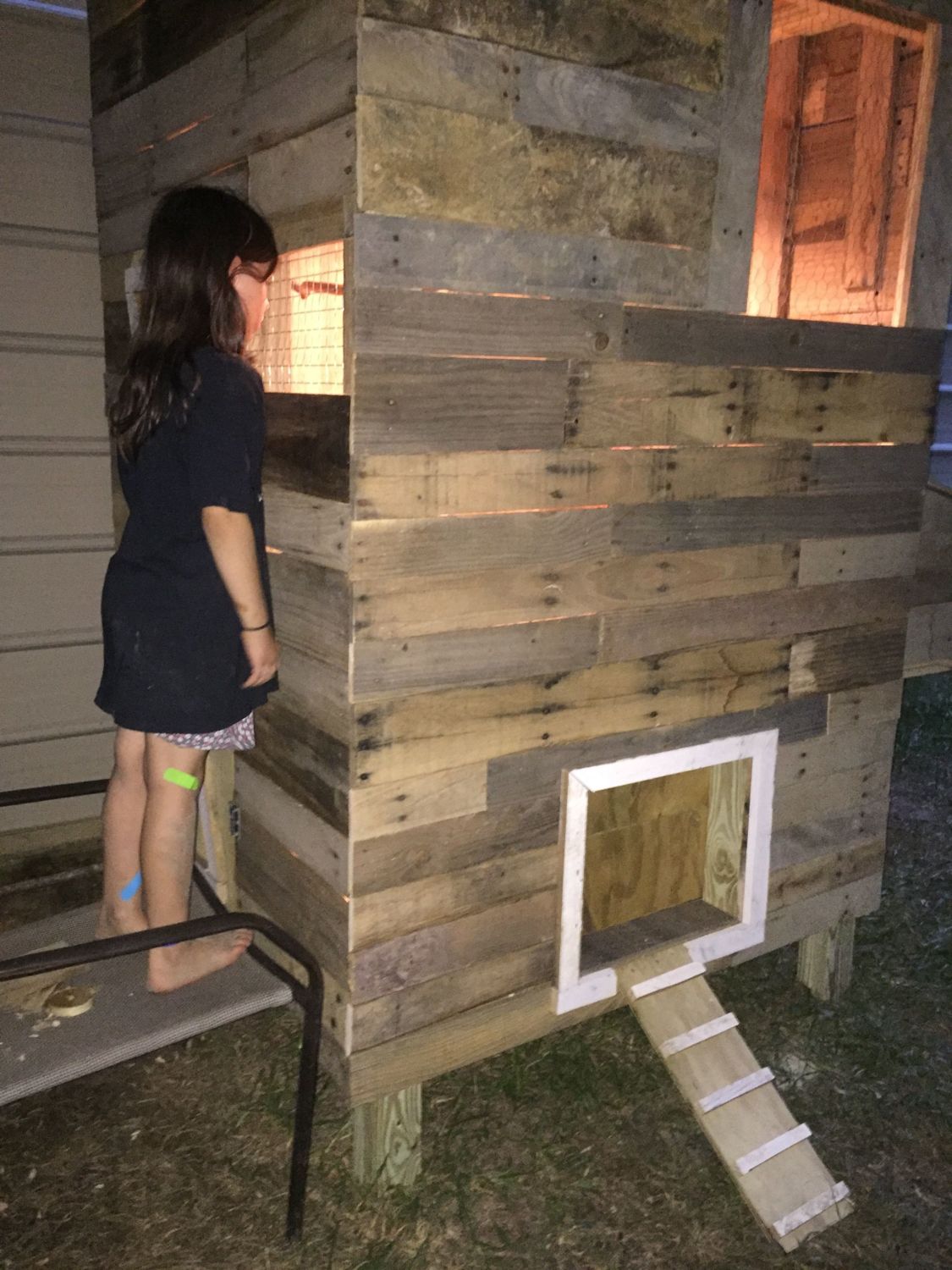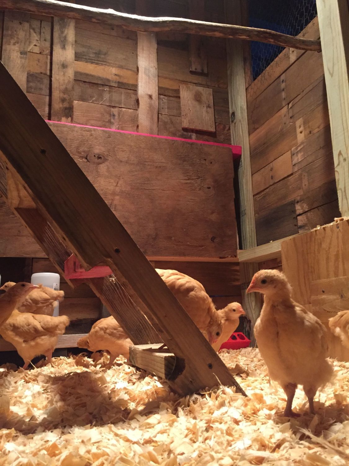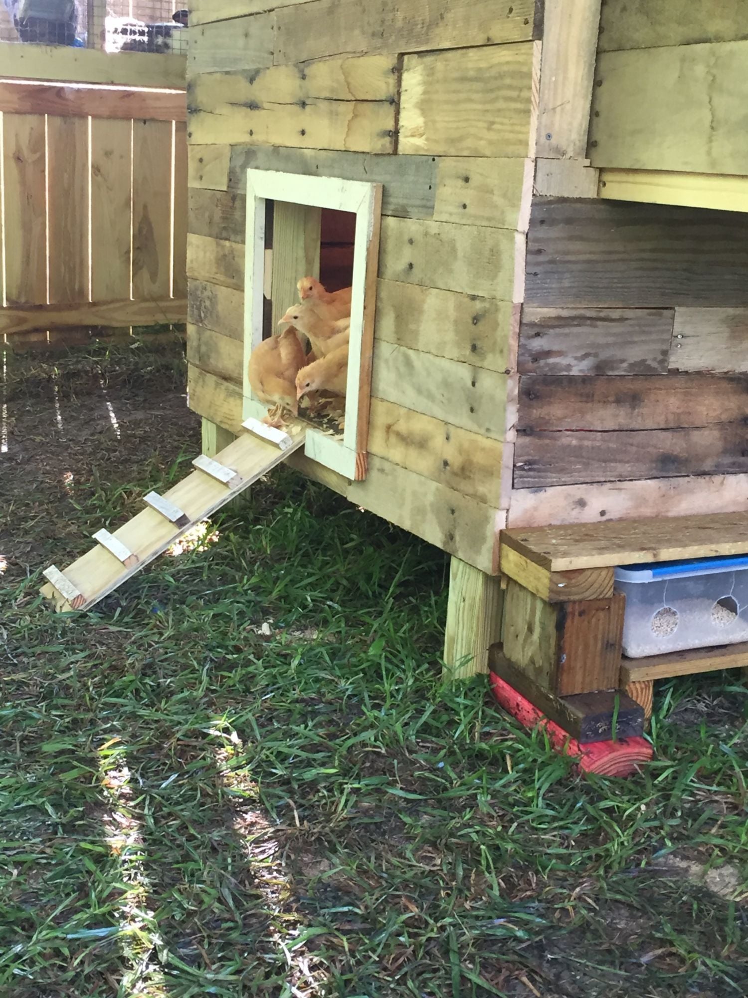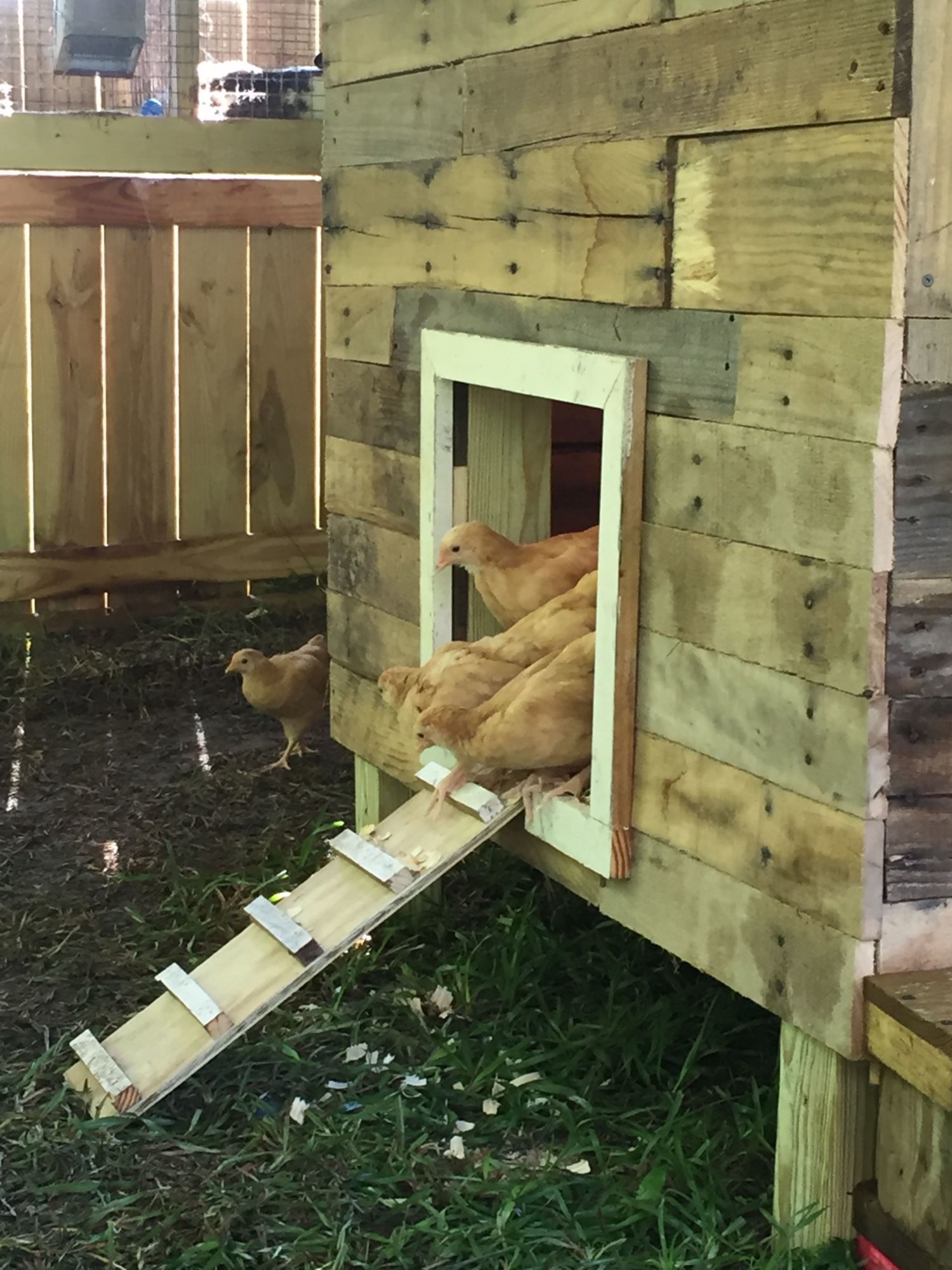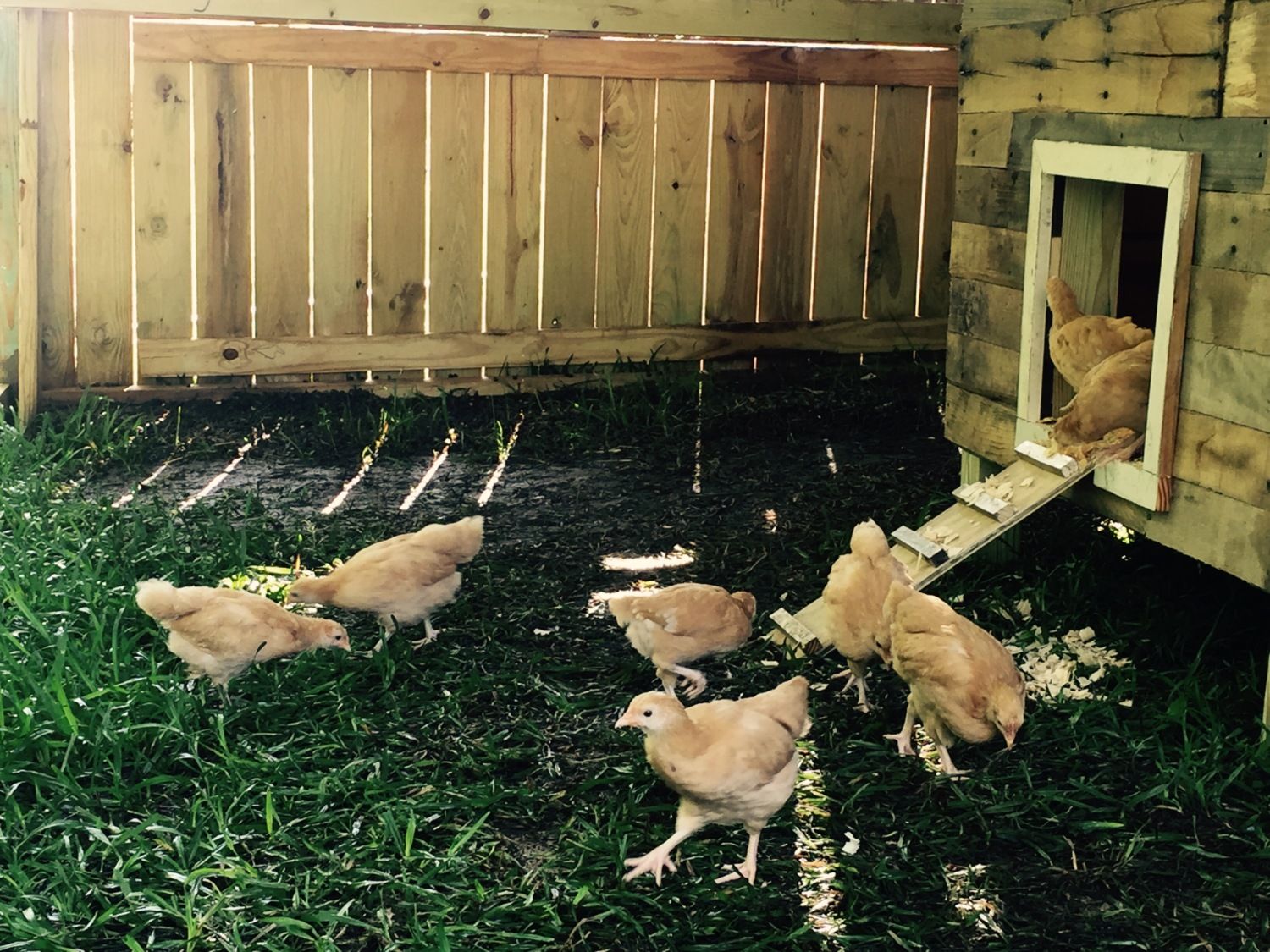 New to this but I have a few questions for you seasoned mamma hen's! I've read plenty for months. I know there is still tons I have to learn but who better to go to than those who have been there done that and have a t-shirt. I bought 8 buff orp chicks thinking statistically I would lose 2, however, here we are, 7 weeks later and our 8 girls are doing great! We have a huge 10'X24' space, that's is protected from predators, wonderfully shaded, with great ventilation so they will get the nice breeze that comes through. Inside this space we built a hitch for our rabbits that takes up 10'X2' of the space as well as a 4'X4'X6'H coop for our girls to go into at night. We moved them into their new coop last night. Their nesting boxes are closed off until they are laying age.