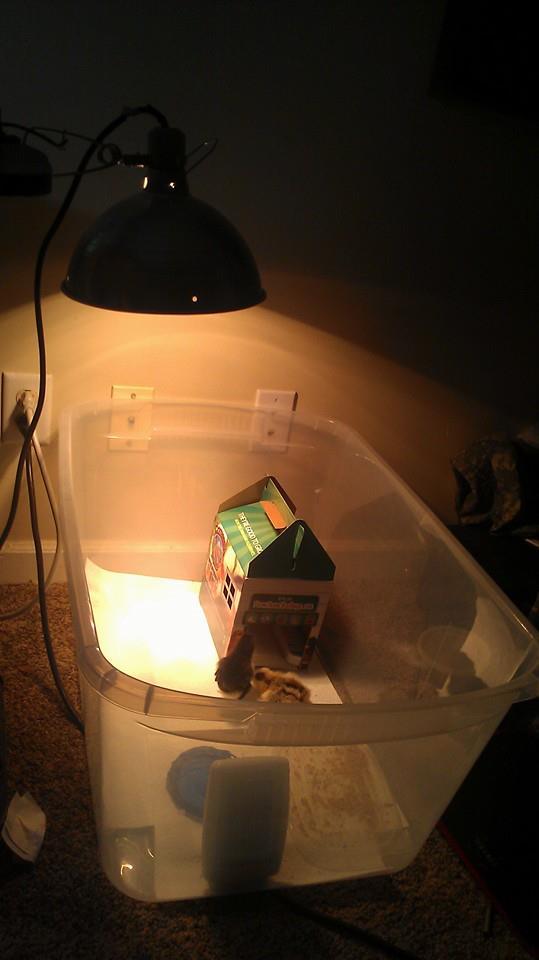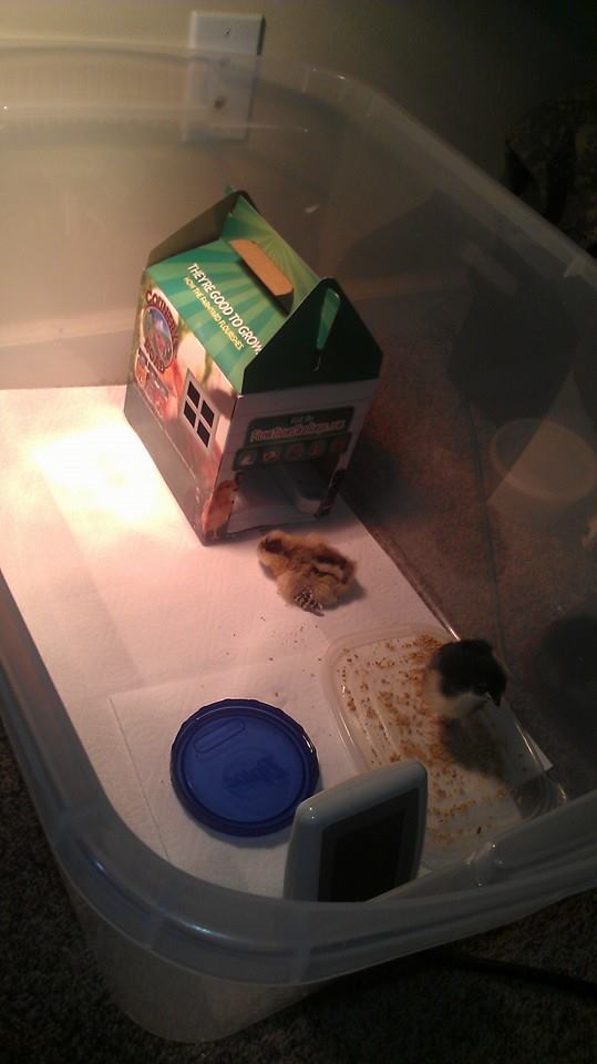 So, I went to Rural King today to return a drill bit, and walked out with two chicks. One's a black one that I think said "Australorp" on the sign (but it could have been another "A" word), and the other is a chipmunk-striped chick that I can't remember because I was in such an excited state I didn't really pay attention.