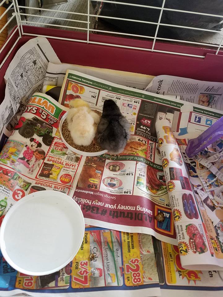 Hello, everyone! My name is Monica and I am a new chicken mommy thanks to my daughter's Ag class hatching the babies about April 20th. We took 2 of them and another mom gave us 2 that her daughter brought home. I have wanted chickens for a long time and I finally got them. I just don't know what kind they are or what sex they are. They were sexted before we received them but I was told at the feed store by some young women that work there that that may not exactly be true as people have different ways of finding out what sex they actually are. I was told we had one pullet and one cockerel. The 2 that another parent brought us yesterday are supposed to be pullets. Any idea what may be the truth? My daughter's Ag teacher said that the cockerels mature slower and their tail feathers aren't as developed as the pullets of the same age. Is this true? I will add pictures of the group. The 2 on the top were the original ones we were given. The bottom 2 are the ones we received yesterday. The brown & white one is supposed to be the cockerel. He had a blue spot in his head when we brought them home. Any and all HELP and input is appreciated!! Thanks in advance!
