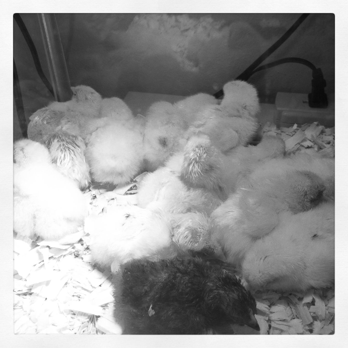 I'm going to be attempting to build the Purina chicken coop this weekend, but for now the little biddies are keeping warm in an empty fish tank covered with ceder shavings.