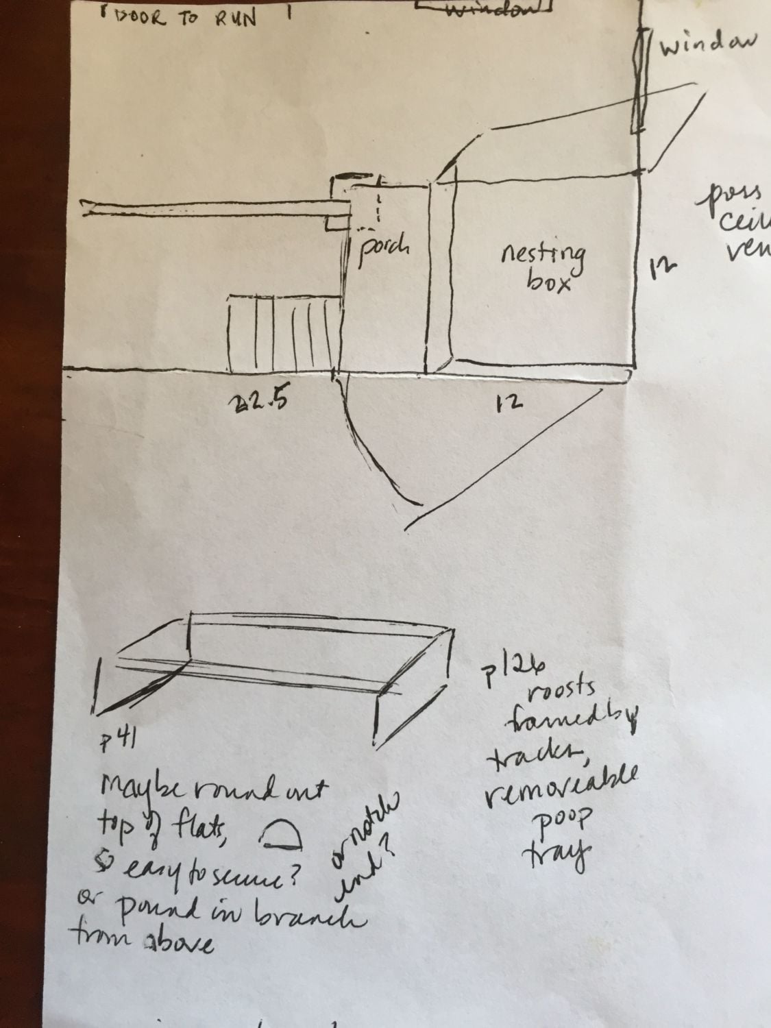 After a number of sketches, I'm down to two interior design possibilities. I'd love advice from more seasoned chicken folks.