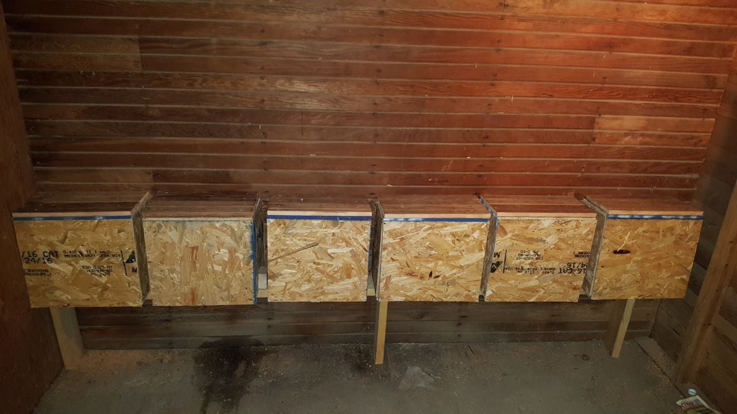 Don't have chickens yet. We're (DW pretty much just coaches) building our chicken coop. We live on 3 acres in a 1930 farm house. On the property we got a huge corn crib that I've turned one room into the laying room/sleeping room. Will be attaching a screened in room beside the crib with access from a slide door in the wall. Just finished up the hen boxes this evening.