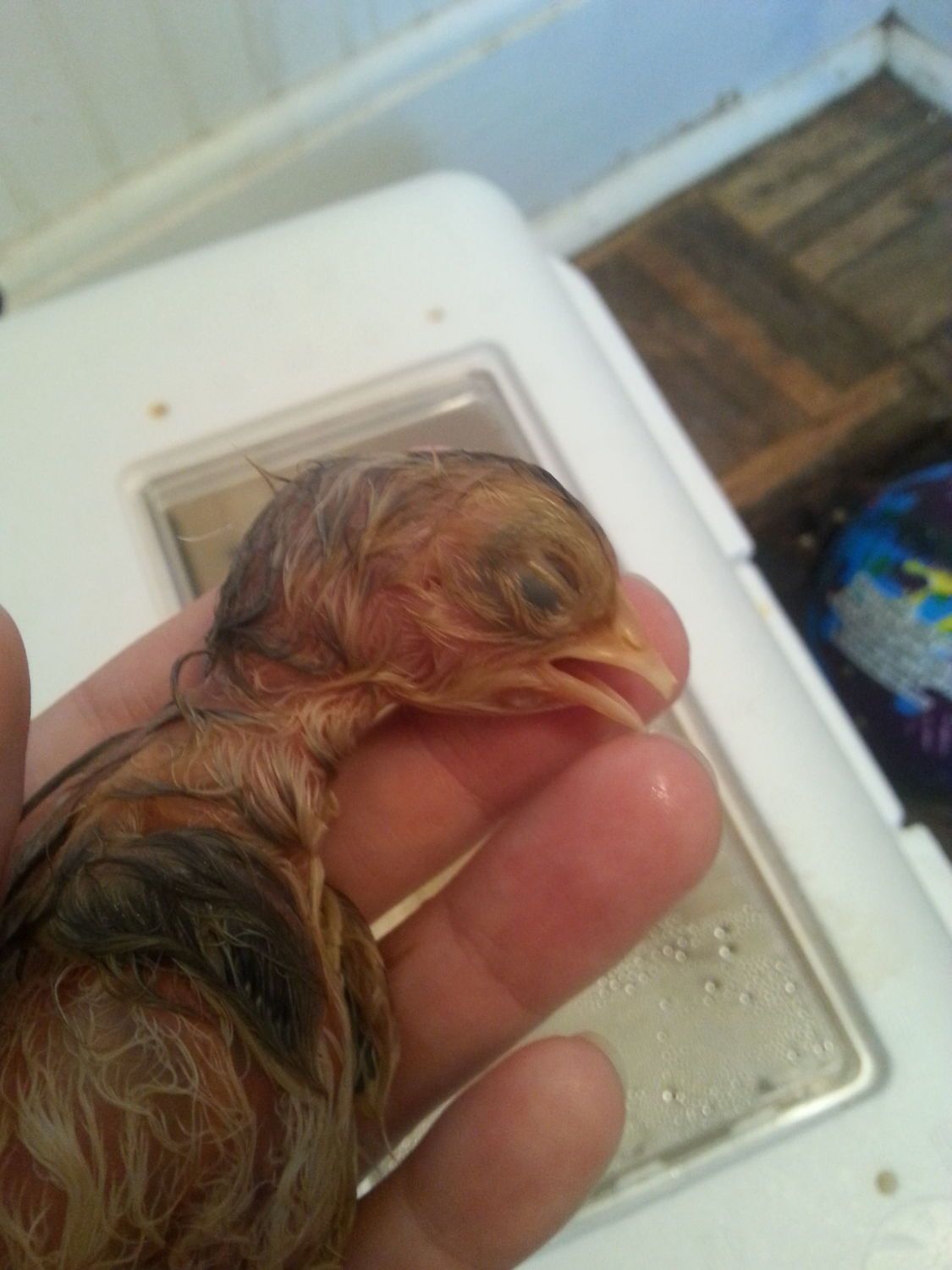 Of the first 3 pips, one broke out on its own, one pipped from the small end and had to be helped out. She popped out more hyper and active than the one who hatched itself!