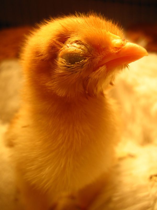 Awwwww...she's a precious little thing!! Good for you for taking care of her too!! I have never seen a chick with a bulging eye. I've seen one with backwards feet, but not a bulging eye. If it was me, I would do exactly what you said. Kinda see what happens and when you can tell more about what's going on take her to the vet.