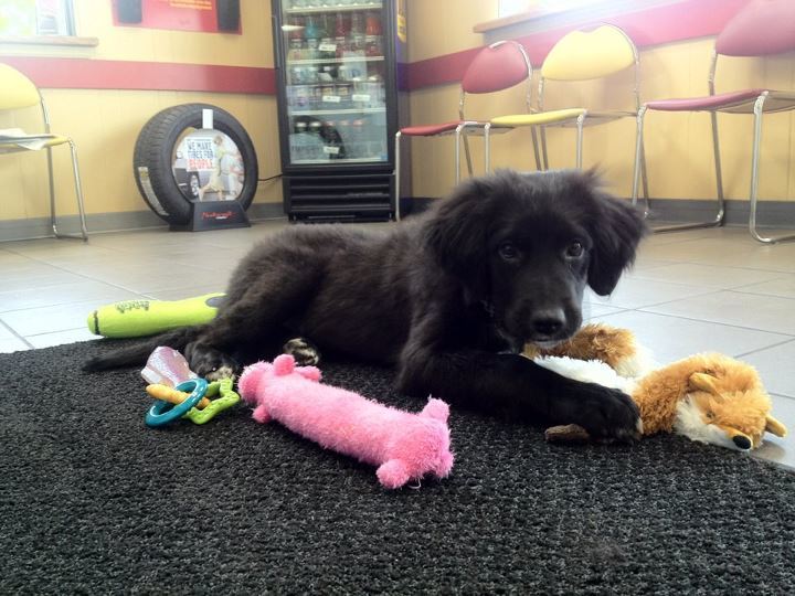 I think that a newfie would have much more bone mass. They have a wide chest and thicker legs, much more stout and solid.