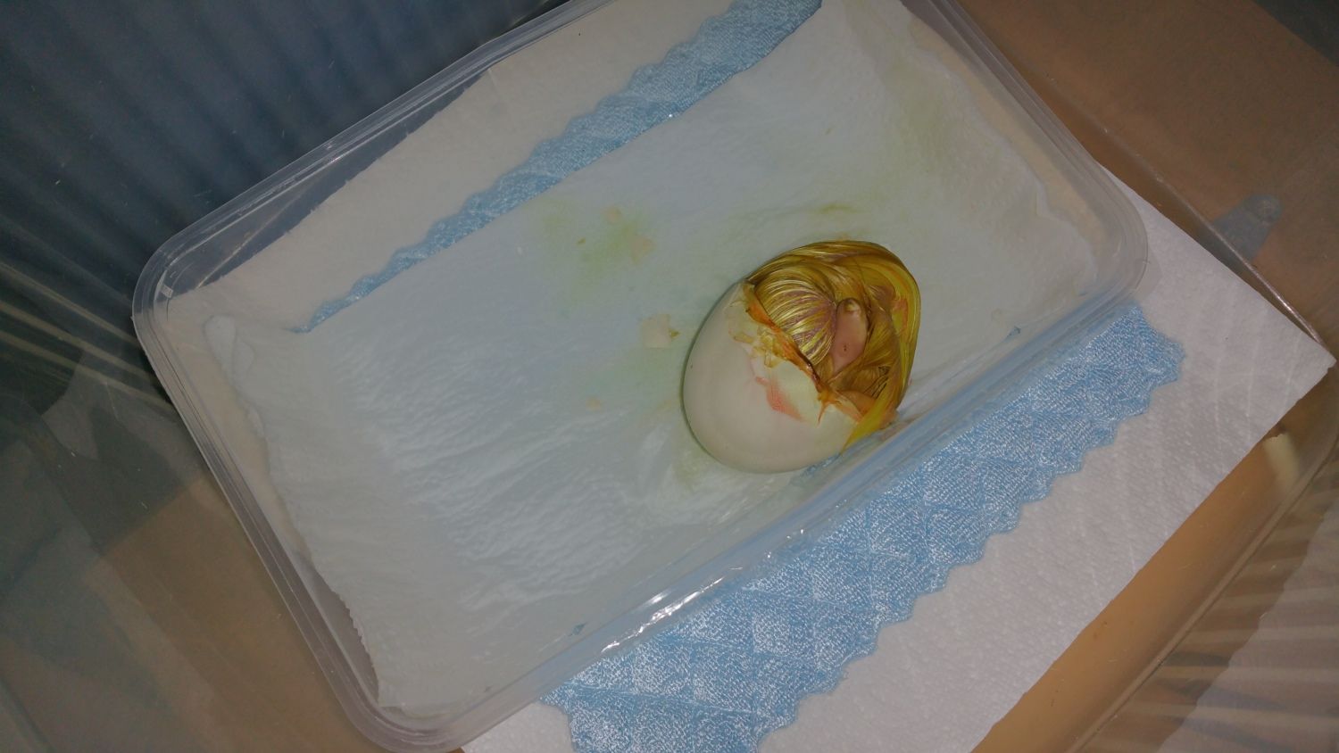One day 26 one of the eggs started its external pip, its now day 28 and its got its bill out of the egg, so a little bit longer for it come out. But i have a 2nd egg now externally pipped.