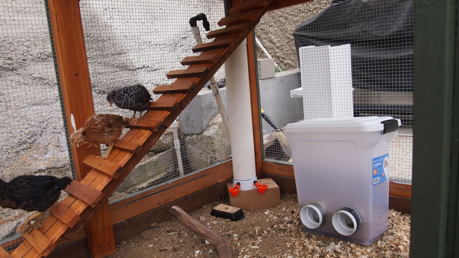 I just finished building my coop and water/feeder.(water cups) and attached it to 4 inch pvc pipe with my garden sprinkler refilling it automatically. It took them 3-4 days to figure out how to refill the water.