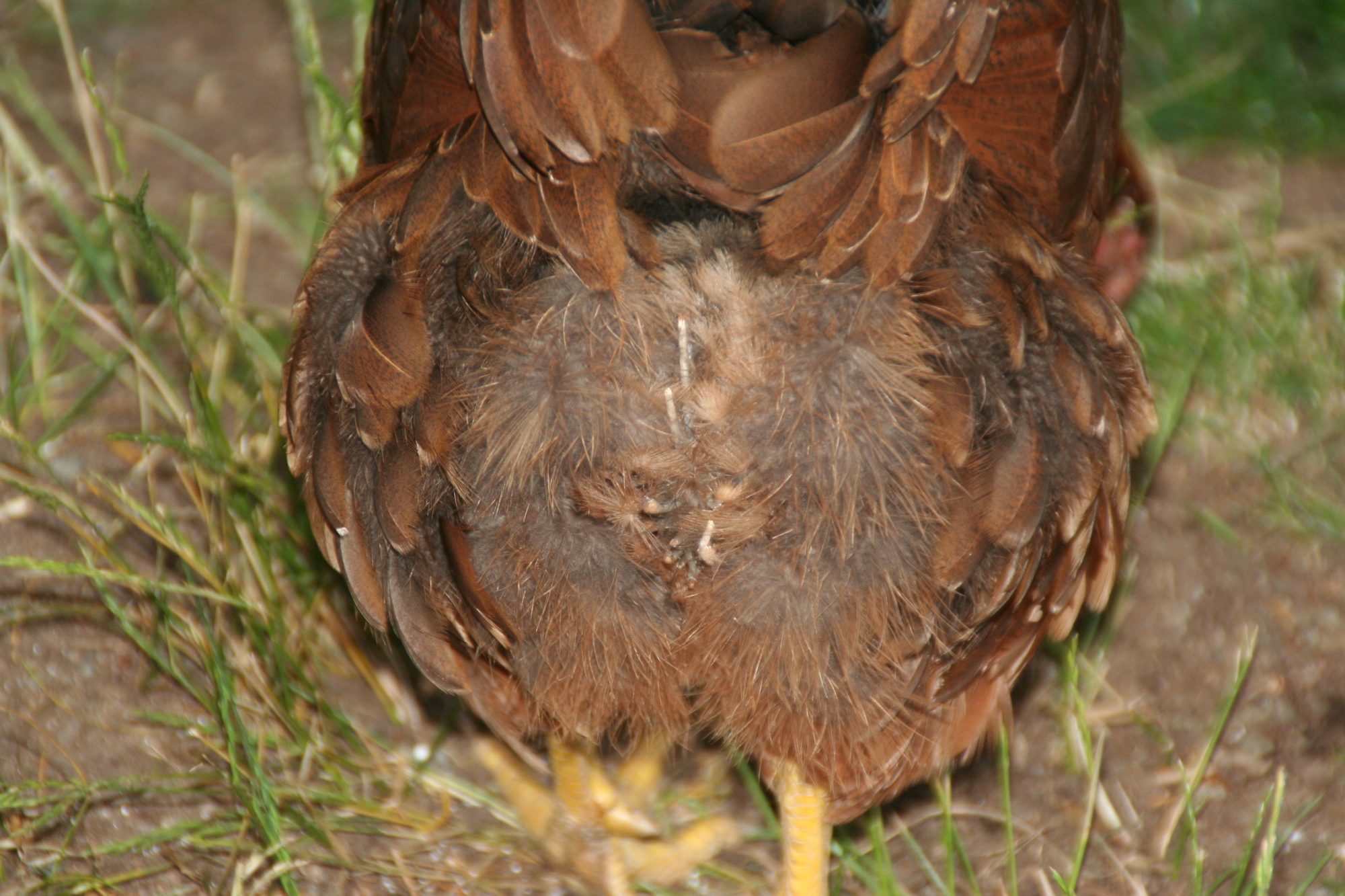 We have had chickens since chicks for just over a year. So we survived a winter. We lost 1 for no apparent reason back in Feb. And swapped a Rooster for Hen but now this is a first. One of our girls which had lights on them over the winter (wont do that again) has stopped laying going on about a month now. I have 3 a Buff Orpington the most consistent easy going of them, a Buff Brahma who recently shed some tail and leg\feet feathers and regrew taking a break from laying for a month as well but resumed a week or so ago and a wellsummer who appears to be going through the same thing as the BB went through. She isn't nearly as full as she normally looks and her face appears to be bringing in more feathers as well as around her vent. She turns into the coop about an hour earlier then the other 2 and we believe she is a full year older than the youngins (she was a trade) When we got her late in the summer she looked like she does now, not as full and smaller. She isn't as friendly but is eating and drinking like a hog. I have checked for lice, worms etc and have not seen anything. Everything I ready about egg production breaks indicates parasites or molt. This is a pic of her vent area that I just got tonight. We do treat food and areas with DE from time to time. Right now the other 2 are laying daily or every other.