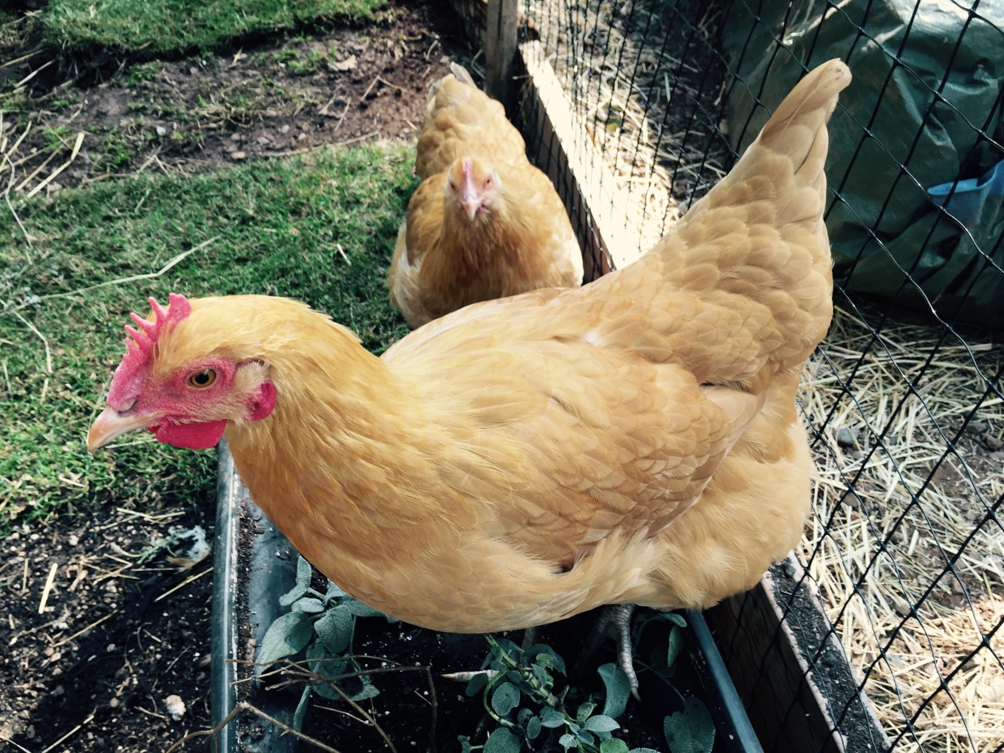 This is my 19 week old Buff Orpington, Nora. I'm thinking she is actually a he, but nothing much sticks out specifically ... more of an overall feeling. She/he doesn't scratch and peck much, has a larger/redder comb and wattles than my other Buff (that is 17 weeks), and is always the one to let out a predator alert. The neck feathers aren't as rounded as my Barred or Australorp, but neither are the 17 week old Buff's neck feathers, and I know she's a pullet. There has been no crowing or mounting my other pullets, but I'm athinkin' ...