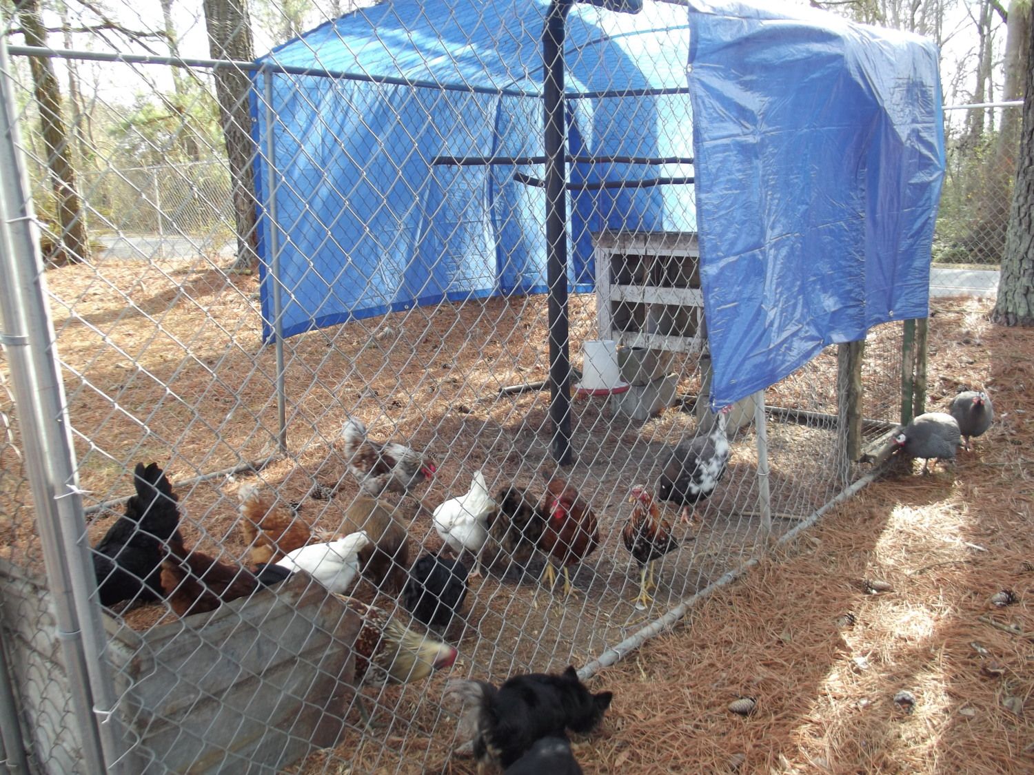We finally got all our chickens moved inside our 6ft chainlink fence. Hubby re-did the community pen... and our chickens are super happy.
