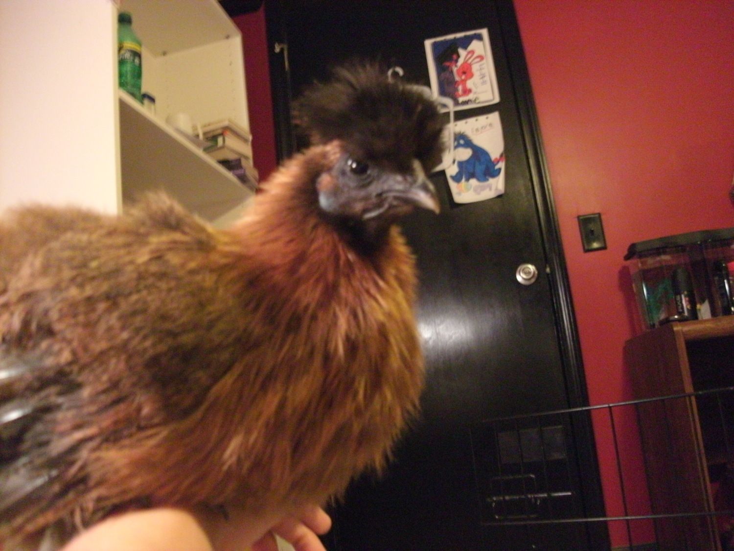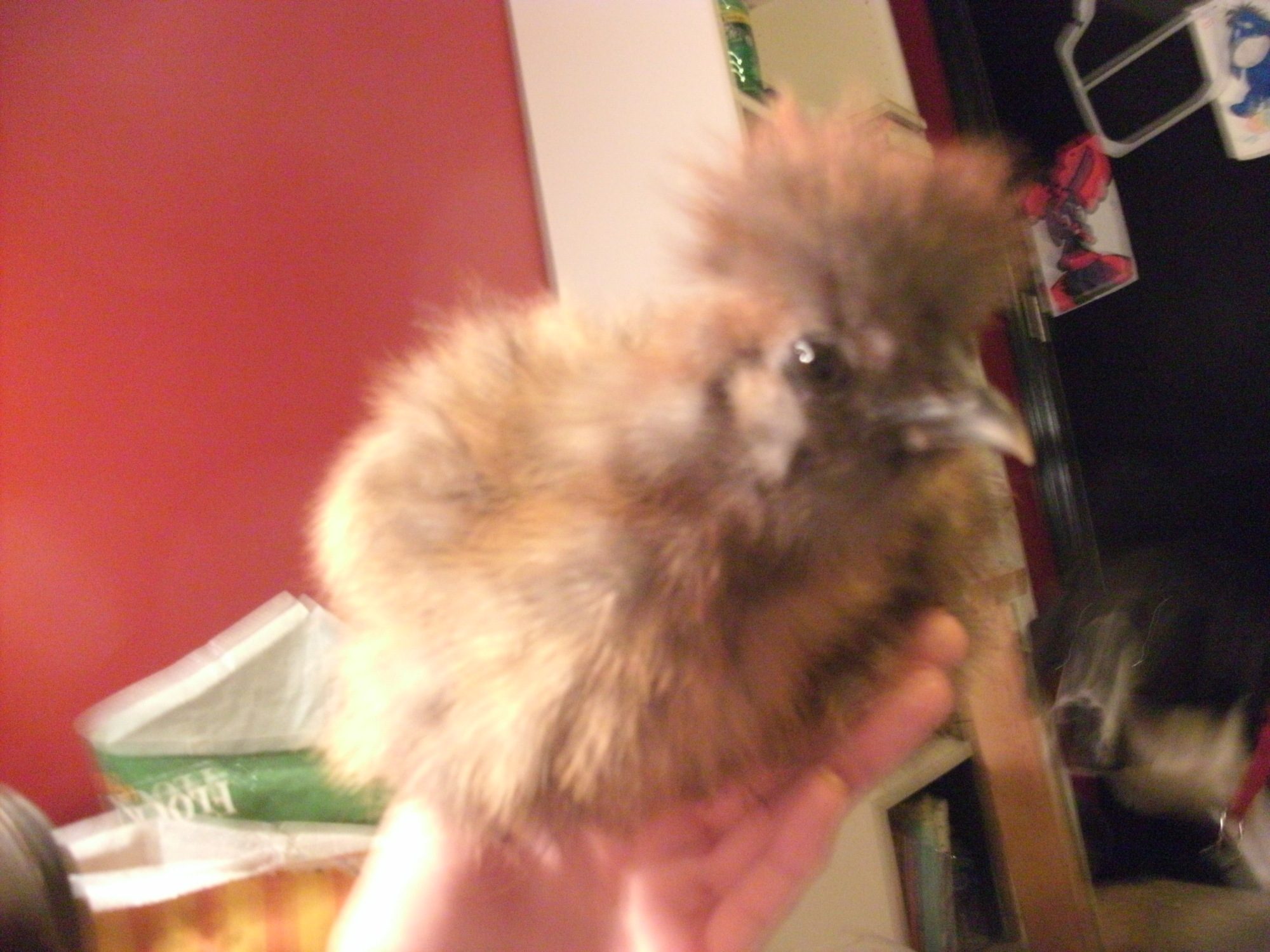 I love the people on this thread! I just got my two Partridge Silkies and I keep running back and forth between my room and the living room so I can catch up but still see them every five seconds lol Sorry for the blurry pics but it was dark when we got them home