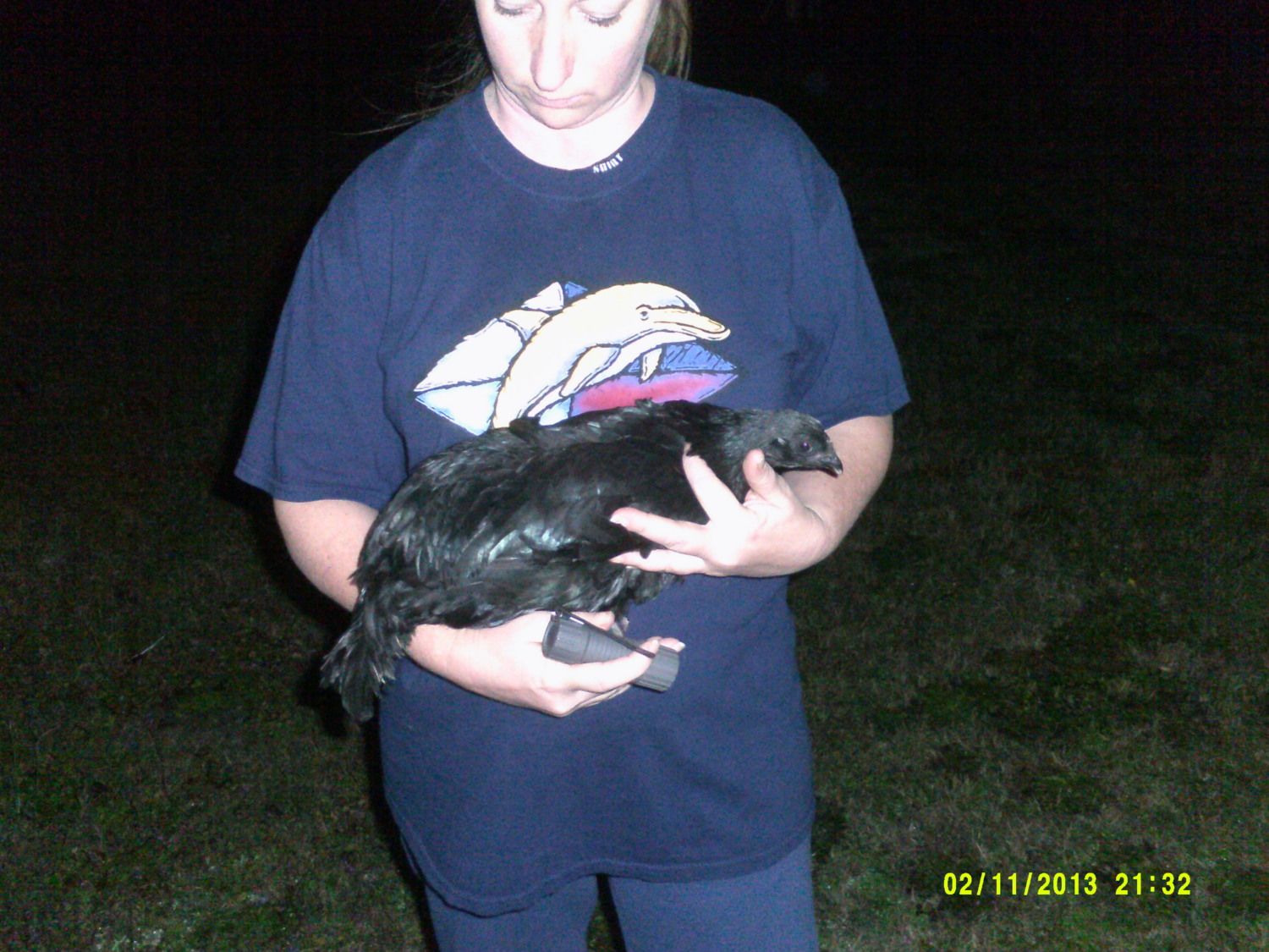 Pullet being taken back to the yard.