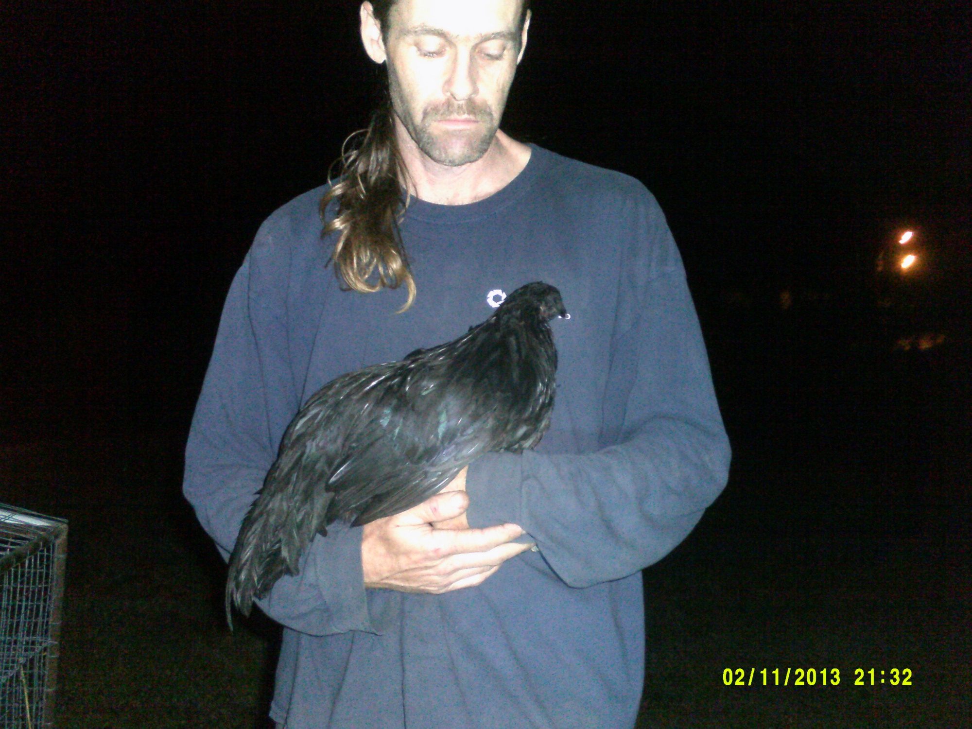 DH holding the young cockerel.