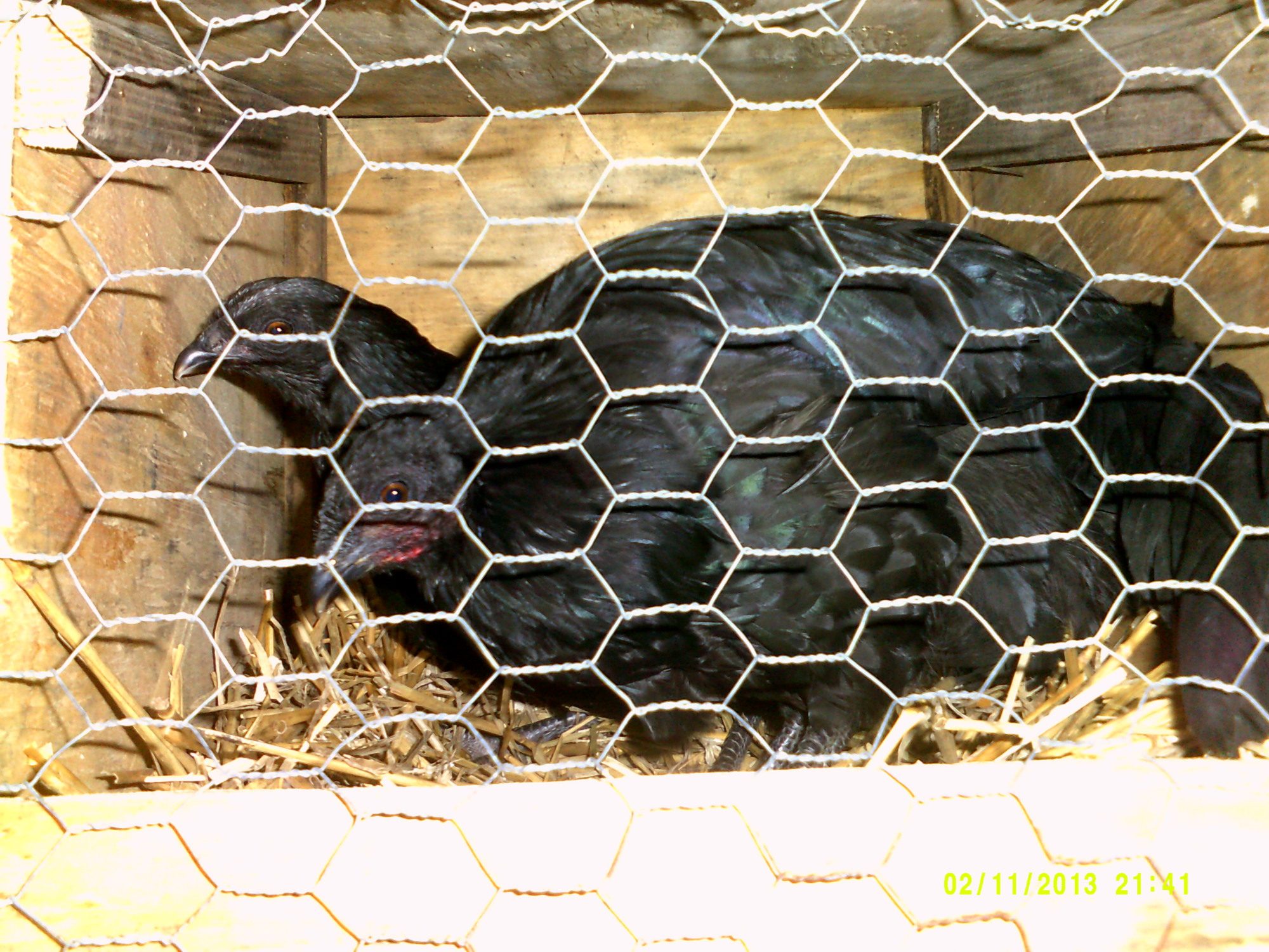 I have recently gotten a mate for my little Sumatra girl. She is very sweet, but likes to hang out up in the canopy of trees, NOT the hen house. Thank you Ramirez & Beth for getting him to us.
