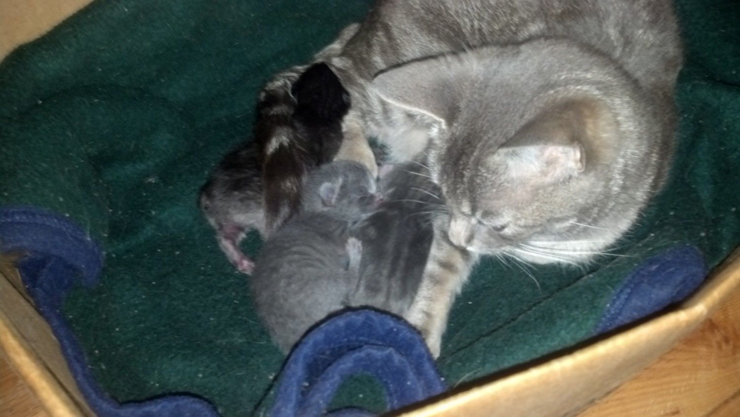 that makes 4 girls sitting on eggs and one girl is raising chicks