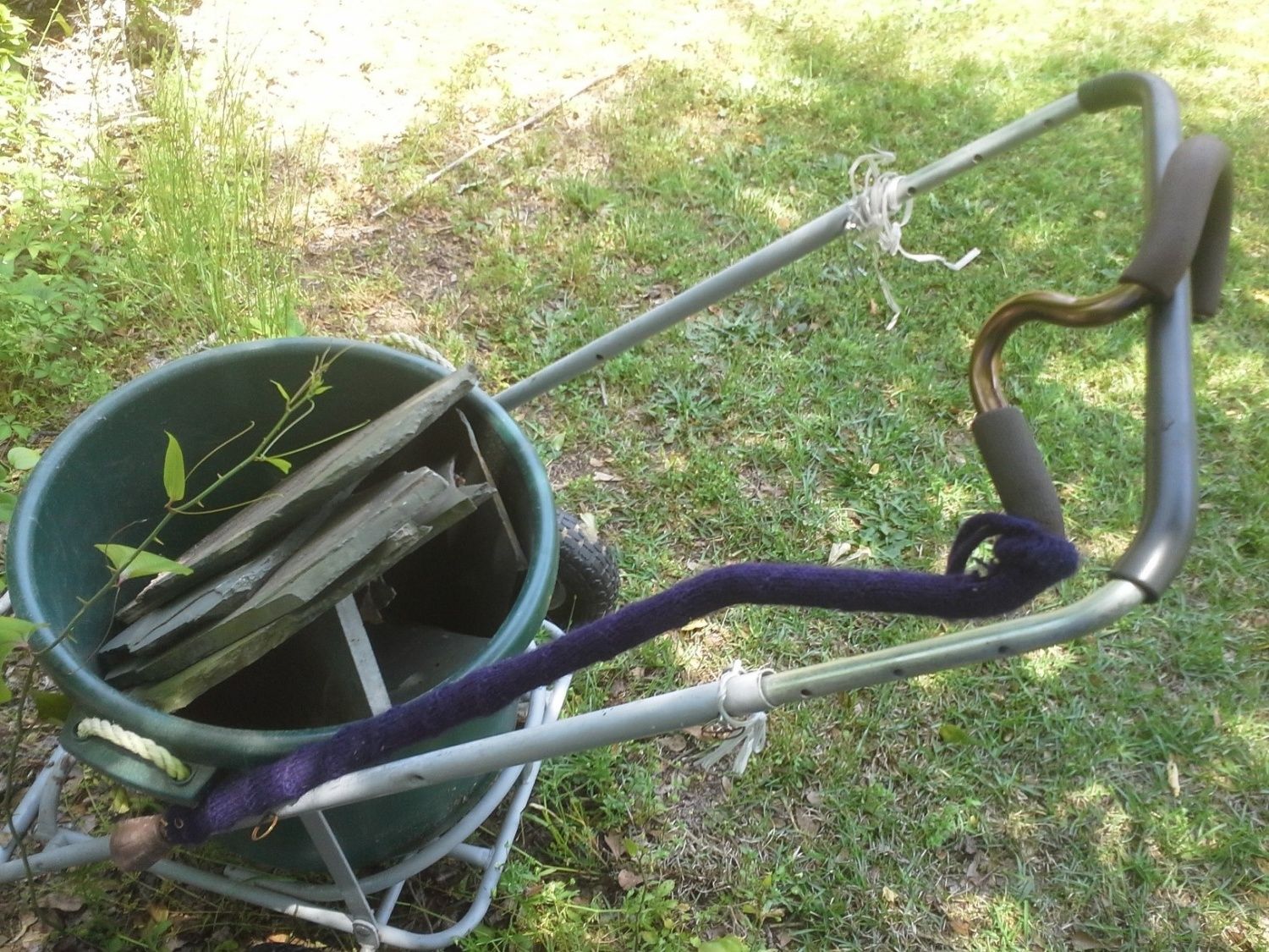 I filled an eight cubic foot wheelbarrow with the extra dirt. I raided this pile hubby had out behind the shop: