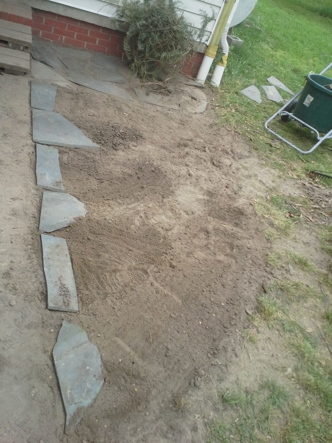 I'll be extremely sore tomorrow. However, I found that if I use the small landscaping shovel, I can lift it even with soil on it! Score one for the gimp! AND I moved all that slate by myself! A year ago I couldn't even have slid a piece of it, much less picked it up! Score one for the meds! I've got muscular dystrophy clinic next month. I'll have a story and pictures for them....and proof of my stubbornness, in case anyone needs it!