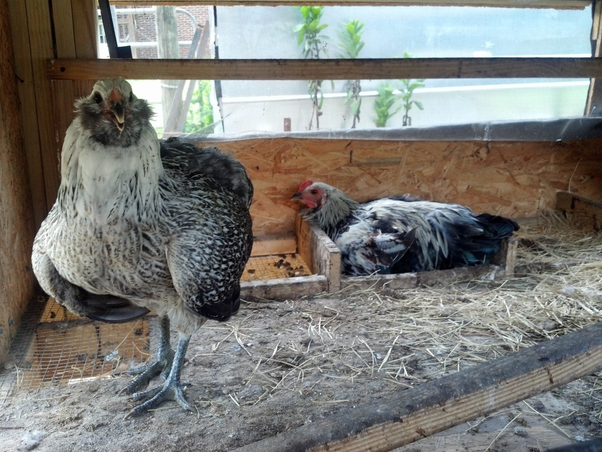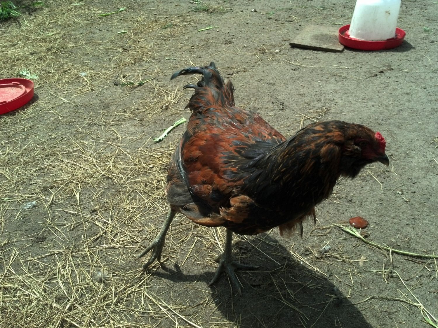 Another EE. Wondering if it might be a roo. No crowing, but the tail feathers are interesting, and the bird is the largest of the Americanas.
