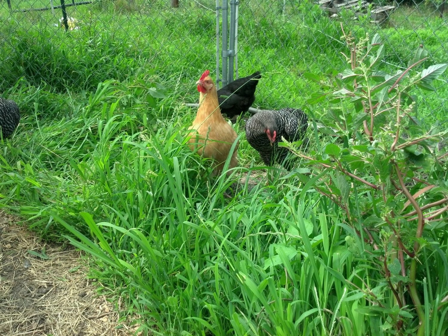 They aren't "free roaming" yet. We've expanded the pen into the garden area so they can get at all of the grass(they eat about as much as our cows). Probably going to start letting them roam this weekend.