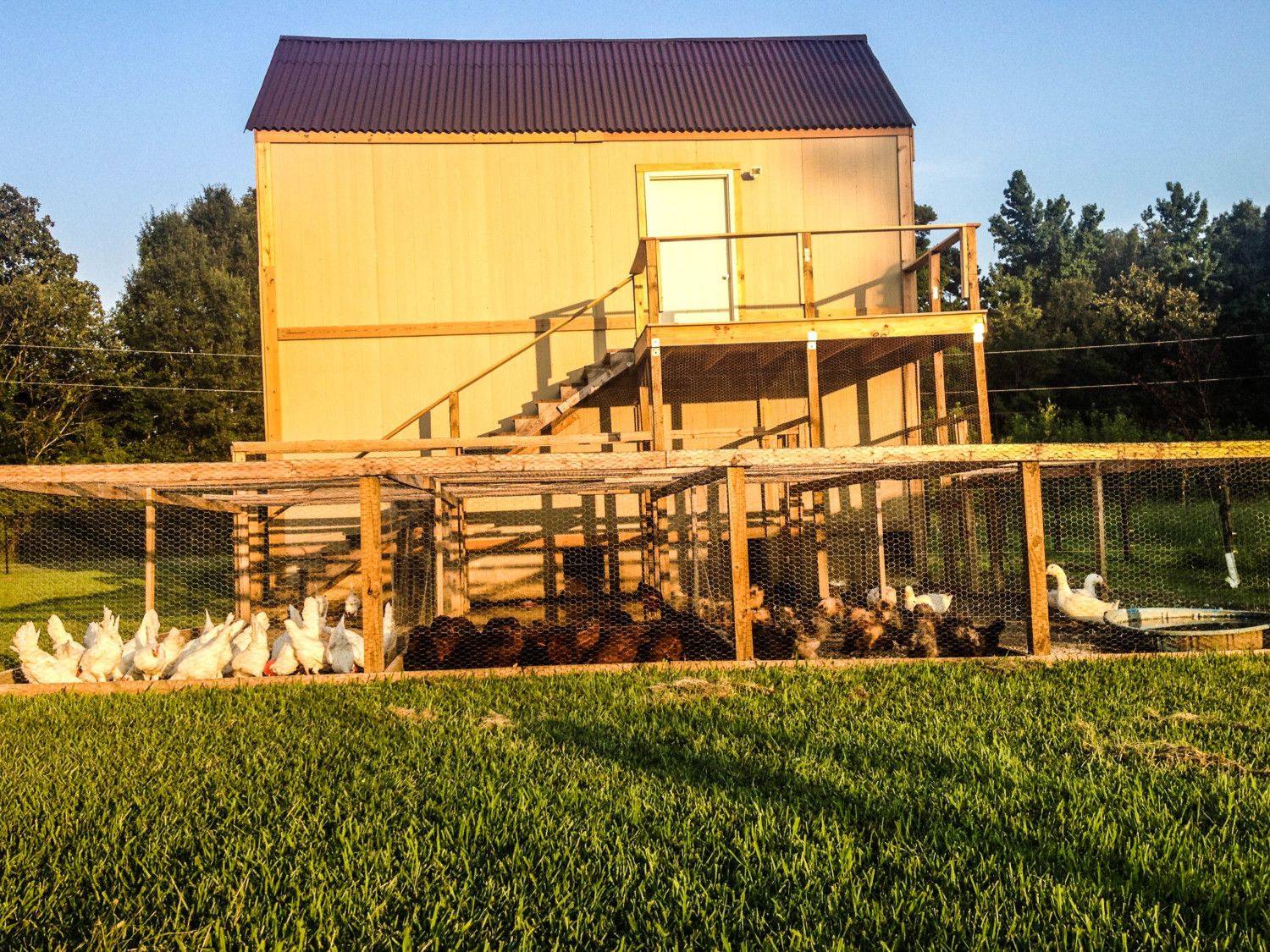 I have a large hutch/coop that I ordered online when I first got chicks. It has an upstairs and the bottom just goes to the ground. I put him in the bottom on a spot with lots of tall grass just to keep him safe while he is healing.