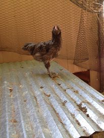 Ameraucana/? probably RIR on left and Ameraucana/Barred Rock on right (this one has blue legs)