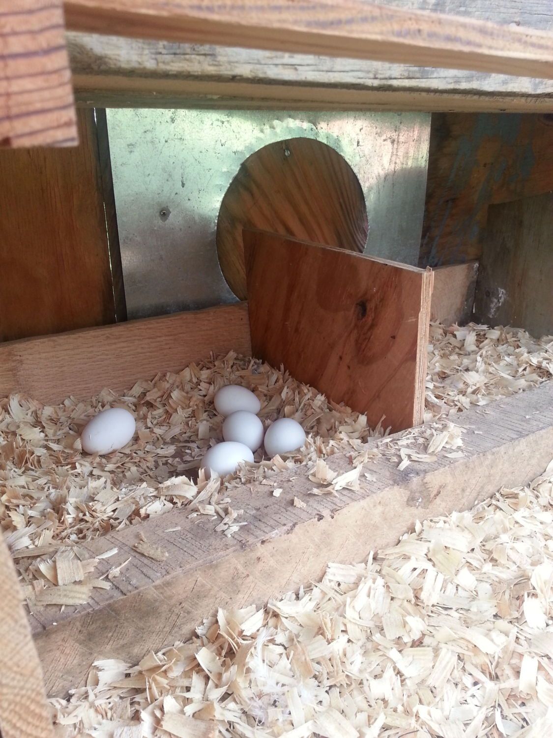 Secondly - and this is kinda comical - we have 8 girls, 6 Leghorns and 2 SLW. We have six nest boxes to choose from. This is what I found today:
