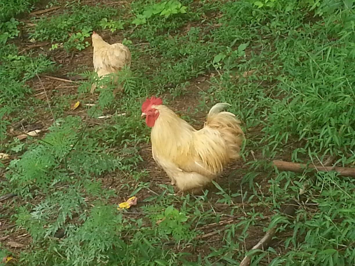 Here is a picture of my rooster that was killed. The hen in the background was also killed and is actually the mama to the chicks. The hen that is sitting had actually quit laying by the time I put eggs under her.