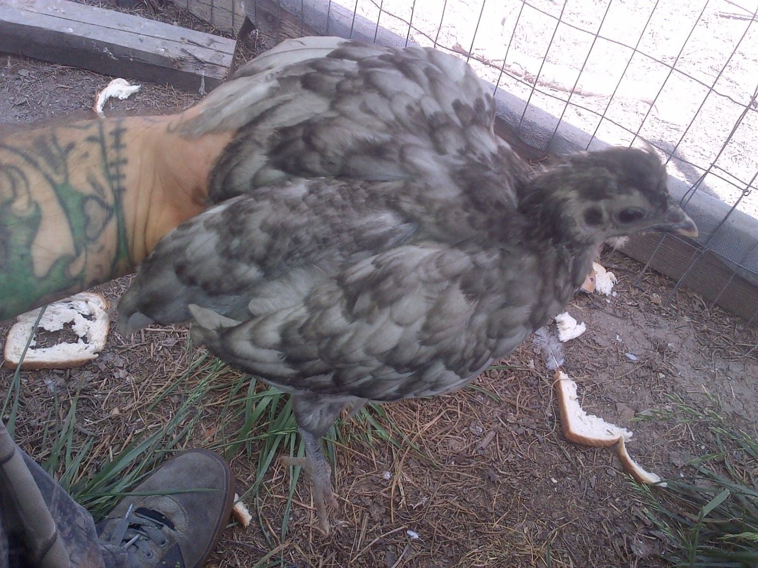 Idk if you guys remember the chick I posted that i hatched off of the blue andalusian I got at auction that had been bred with a lavender orpington or not but this is her... My wife refused to let me sell her