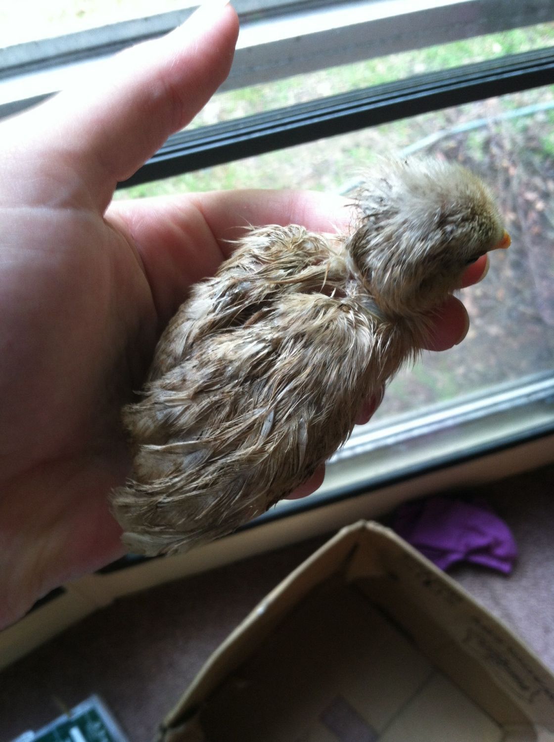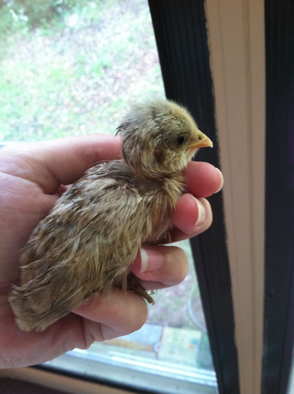 I have to rant for a minute or two. I went to go look at some potential new chicks from a lady near Jacksonville. She supposedly had all these beautiful rare birds. So I went and was informed that she had chicks available . I had just bought 25 chicks and had room for a few more. Upon arrival I saw 4 chickens crammed into a small dog kennel. Right away I could tell this wasn't a good place for chickens. Her stock was wet, standing on top of each other, no food or water and completely filthy with their own poo. Not one chicken was free range or even had a run. Note there are 40 chickens, 4 to each crate. She let me over to her "chick stash". Standing in a 5 gallon bucket where 30 day old bitties. It was heart breaking. Again no food or water, standing in their own filth. Most where so crusty they couldn't move their head or wings and where very cold. Did I mention they had no light... Well I didn't get any bitties but on my way to my car I heard the faintest peeping coming from a bush. I walked over and found 2 chicks, cold, wet, starving, their fluff was hard and crusty. I grabbed the babies and took them to the lady. She took one look at them and said that they aren't gonna make it that I could take them. So I did. One looks to be a Cochin but I have no clue what the other is. Feathers are way to dirty to see. With in hours of getting them to my house. I had them warmed, eating and drinking. And where running around. I currently have a strong motherly Silkie with them for comfort and support. Things are looking up so far. I hope they stay that way.