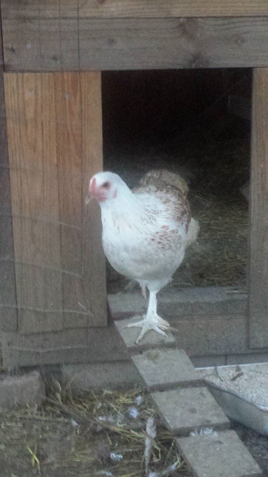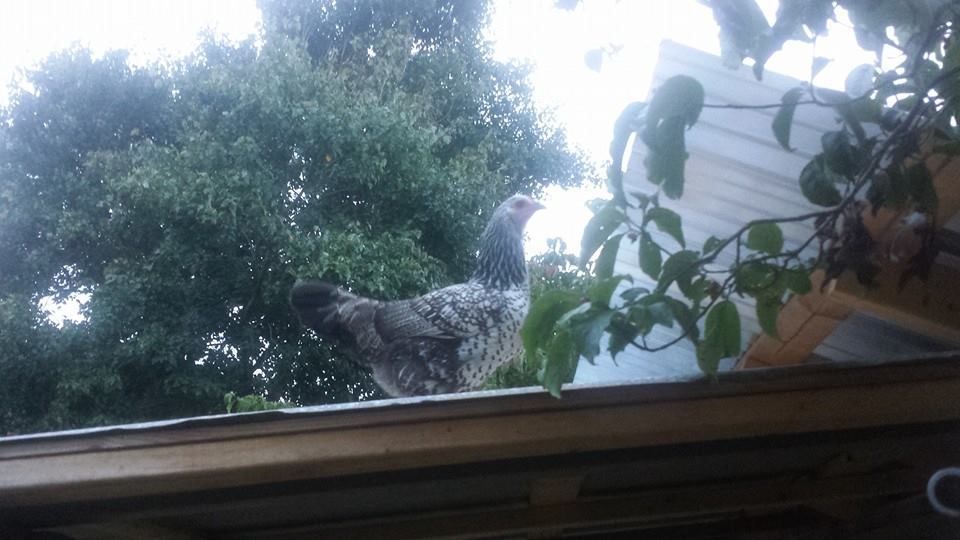 This girl was a trade with a friend...she doesn't roost with the rest...she flies on top of the coop and roosts in a tree then jumps back IN the run in the morning.