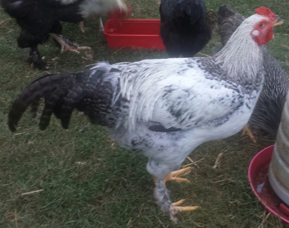 The only rooster I kept from this year's brood, "Lucky Clucker"...half dark Brahma and half Barred Rock