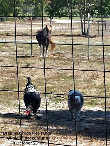 While out with the farrier on Friday, I got some decent pics of some of the boys free ranging on our "sand paddocks"... The hawks were out in force (at least 5) and I hadn't meant for the boys to free range especially since I had an appointment i had to get to, in town, 30 miles away right after the outdoor pony appointment! But it all worked out, and we found out that the boys will return to their hoop tractor when someone else feeds and lets them back in (they haven't figured out going back thru their "pop door" of a bucket yet). So they lived another day to be MY dinner, LOL!!