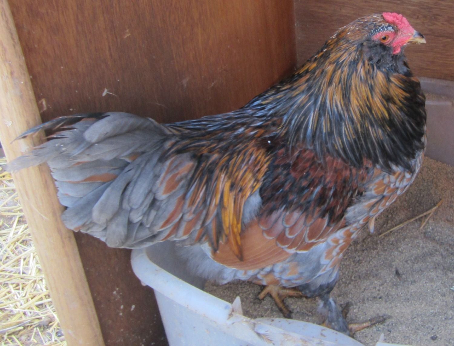 I had a mini get together, (by accident) yesterday. I saw there was a moving sale one town over, and decided to drop by. The lady running it was a chicken lady, who I thought moved 1 hr way, but had moved back and in town, (wasn't allowed chickens in town) so she was moving again. We were visiting talking chickens and another guy showed up, he had one of my roosters (still) and was singing its praises. pic below if what he had gotten from me. So of course he was happy!