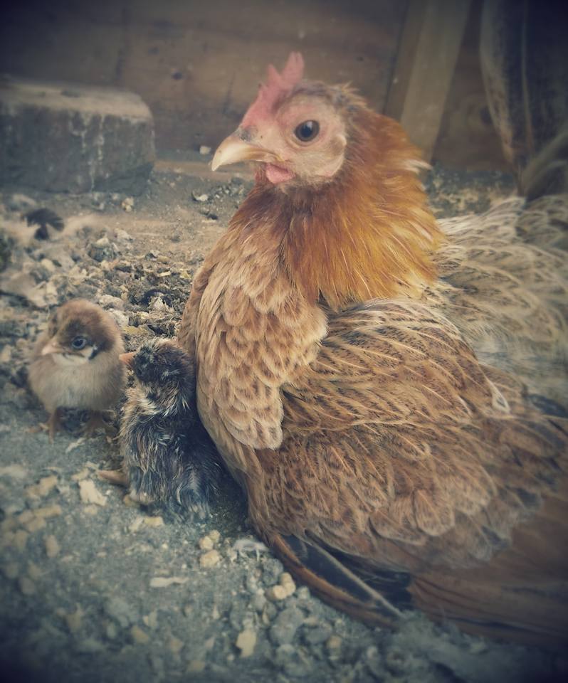 The mom broody hen i got from my dad to sit on my eggs had them.