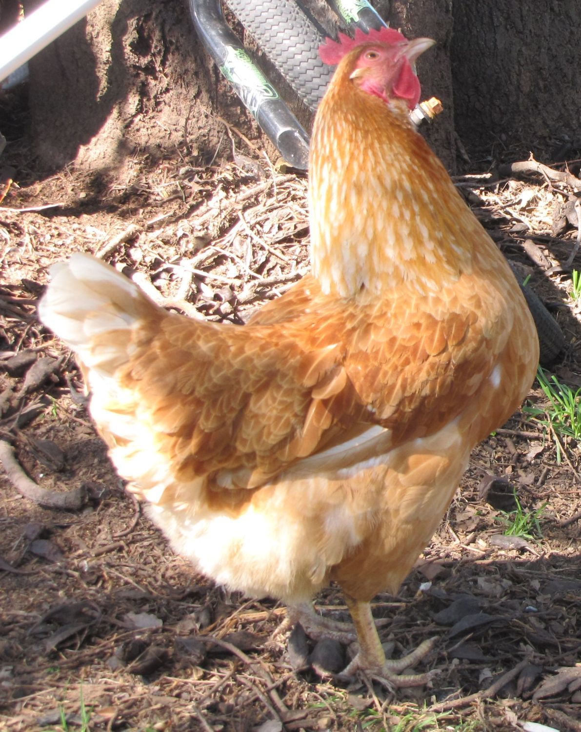 Wow, am still in shock, Let my guys out today, all of them were great, not even an hour later, Henrietta (our 9 month old hen) comes up and sits beside me, panting etc.