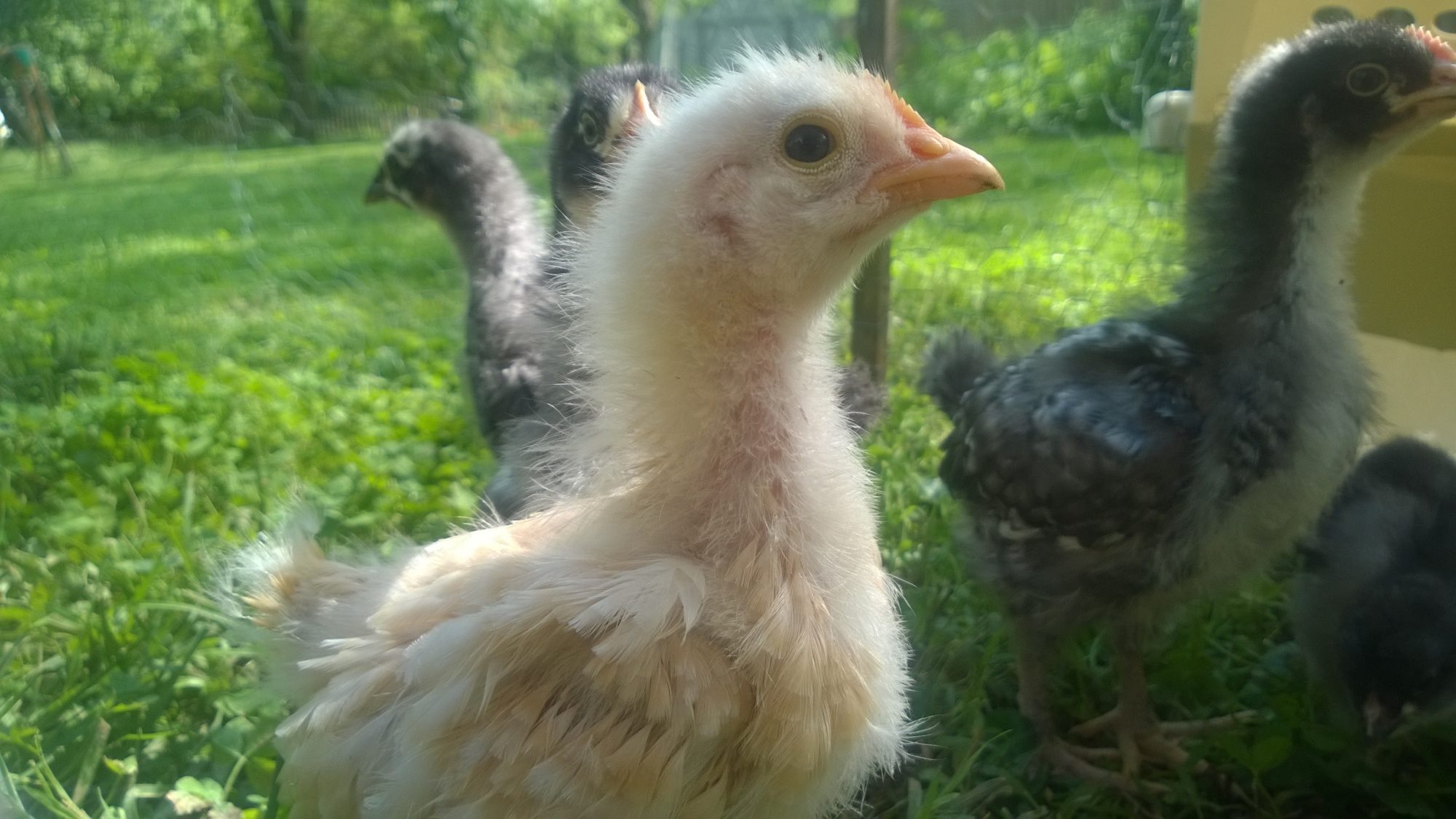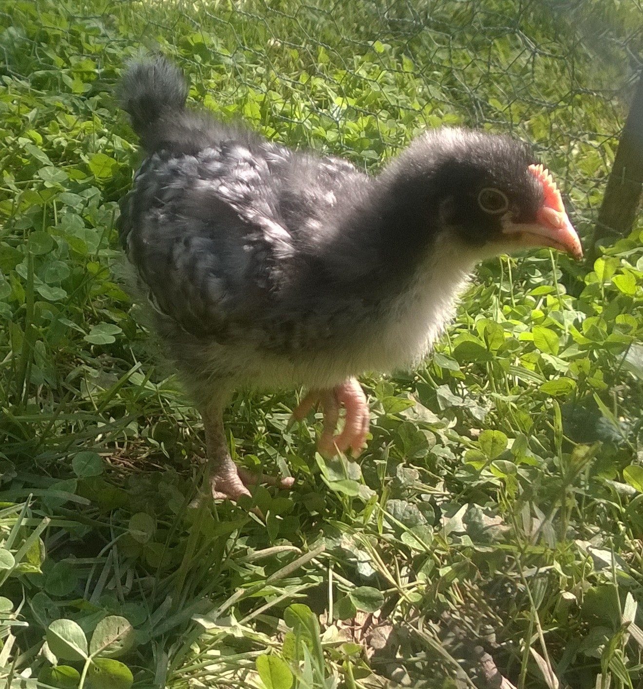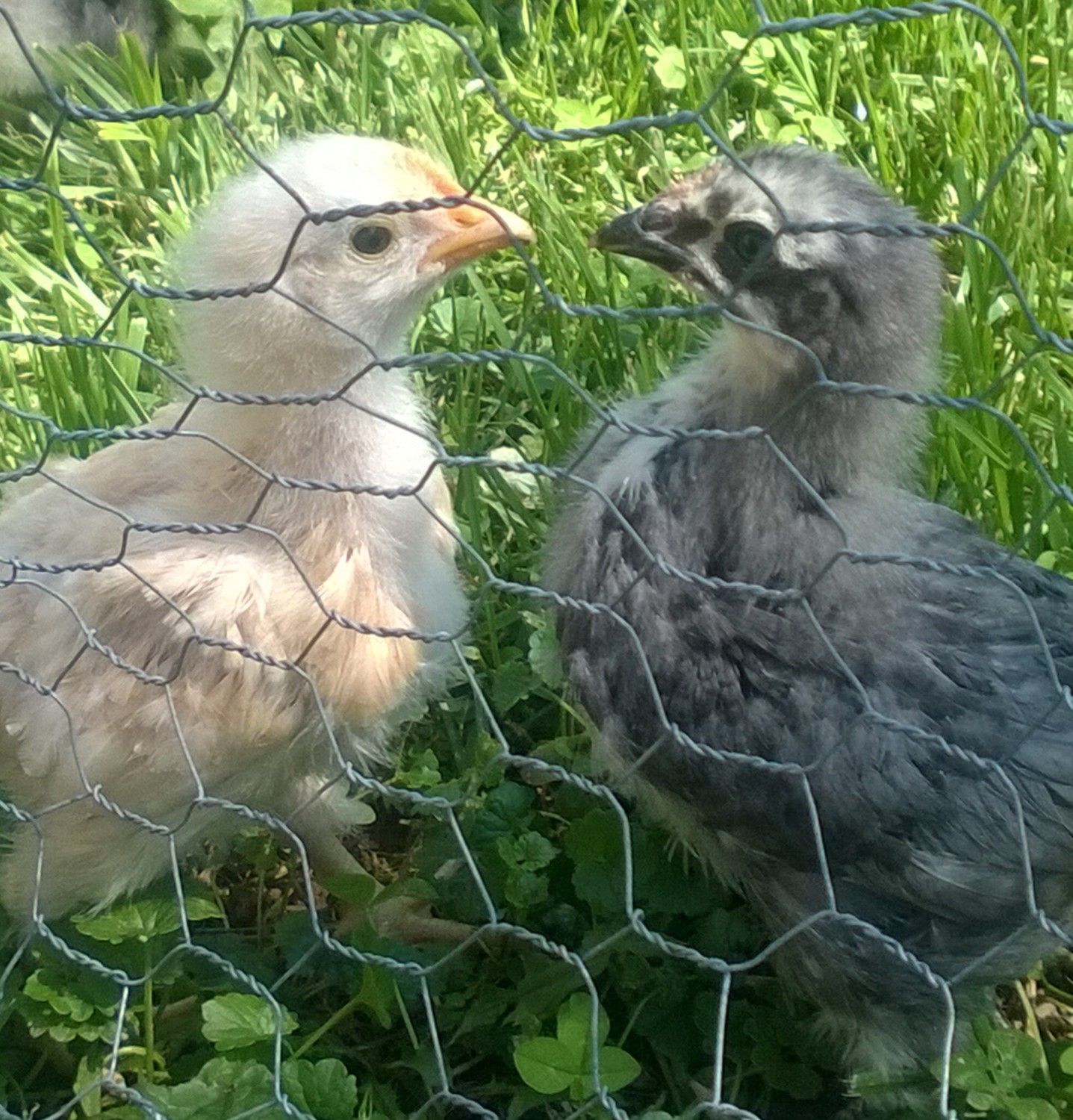 "Csirke" Blue English Orpington(Goldie is next to her) She has the most feathers.