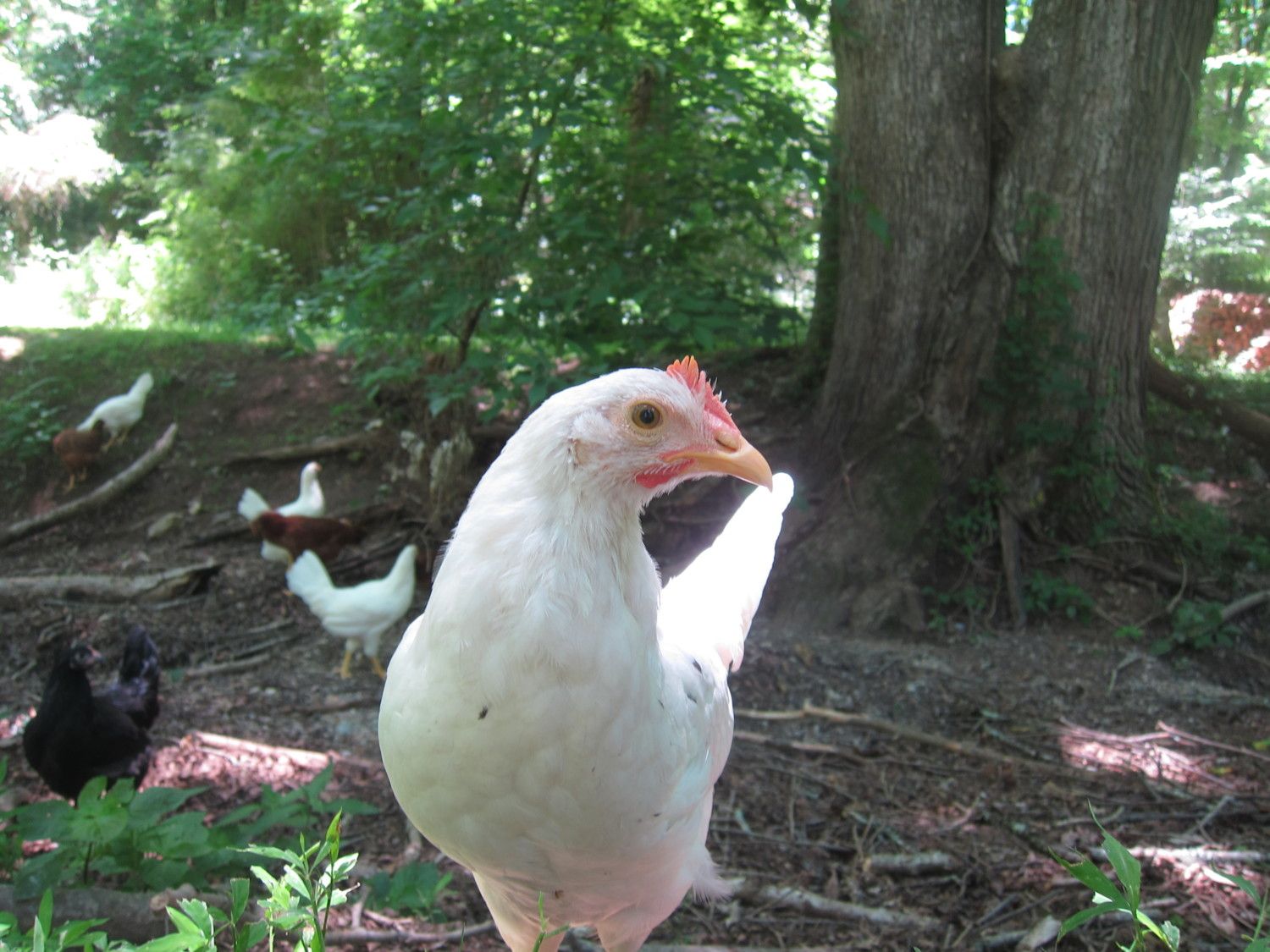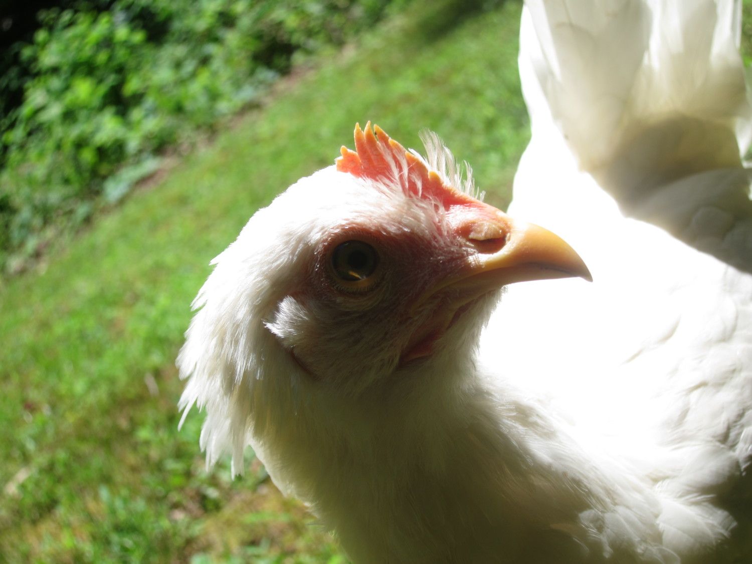 It likes to fight with the other leghorns, I also have these mystery chicks, they are really hard to photograph because they're flightly and never stay in one place: