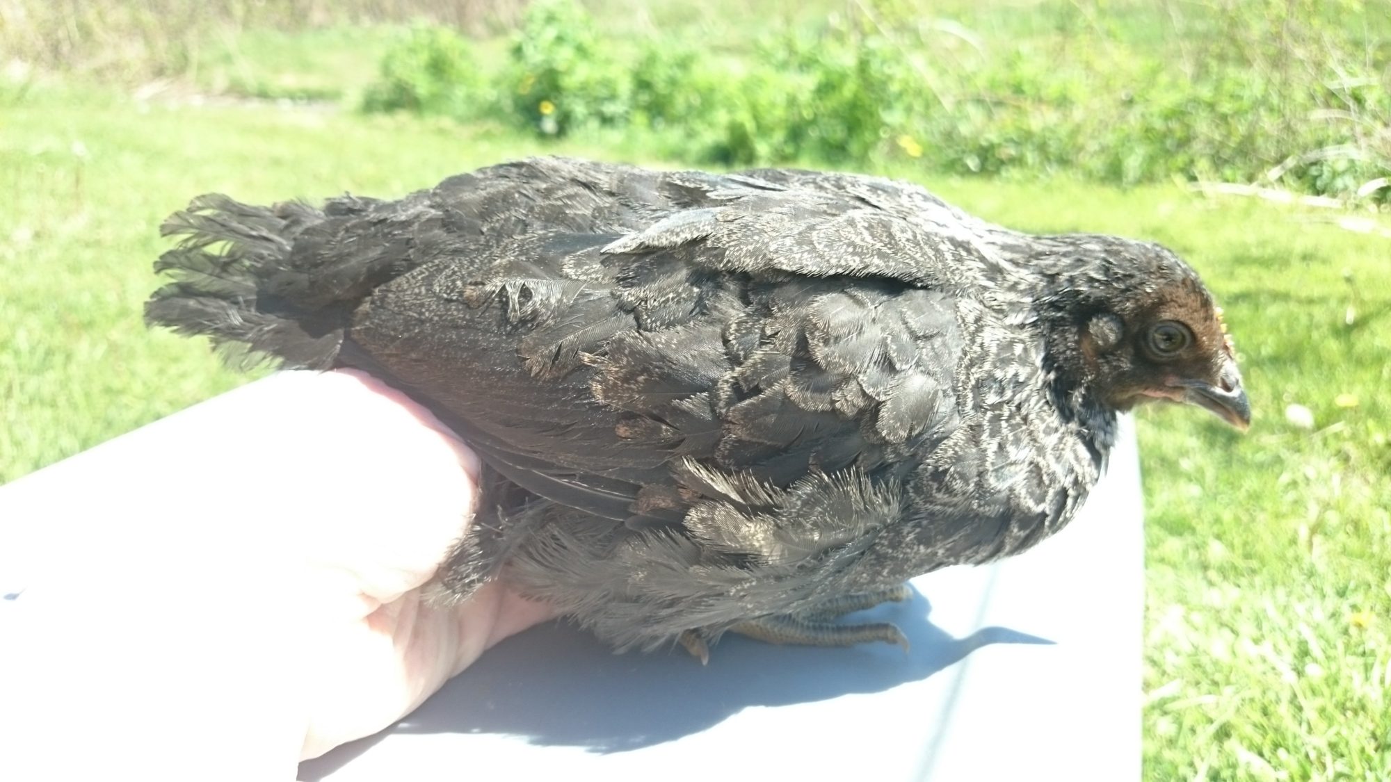 The potential fathers are: Black or Splash Isbars, A black Olive Egger that looked almost like an isbar, Jersey Giant, Cream Legbar, Barred Rock, Bielefelder, Silver Laced Cochin.