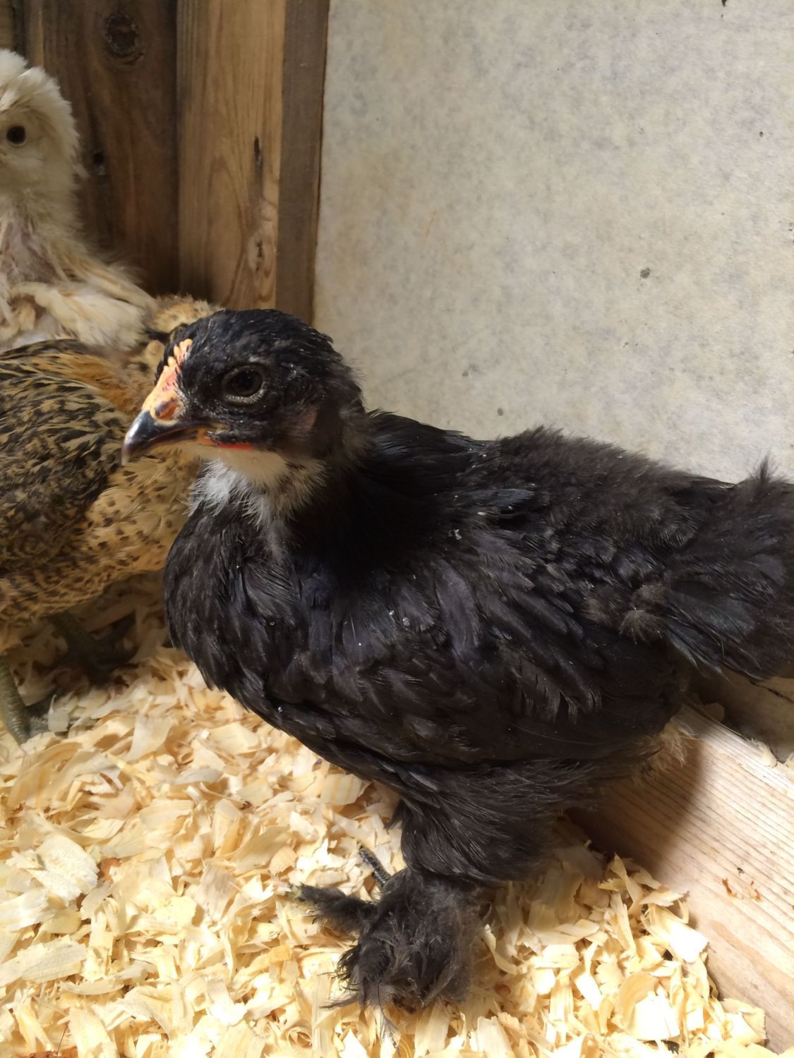 The comb looks like a rooster's.Six week old chicken unsure male or female but leaning towards male, the breed was only marked as black on the box they shipped out so I can't fully say breed cause it's unknown. It is one of five and it has a bigger comb then the two that I think are females but I'm new to this, can you please help? I can get any photos needed
