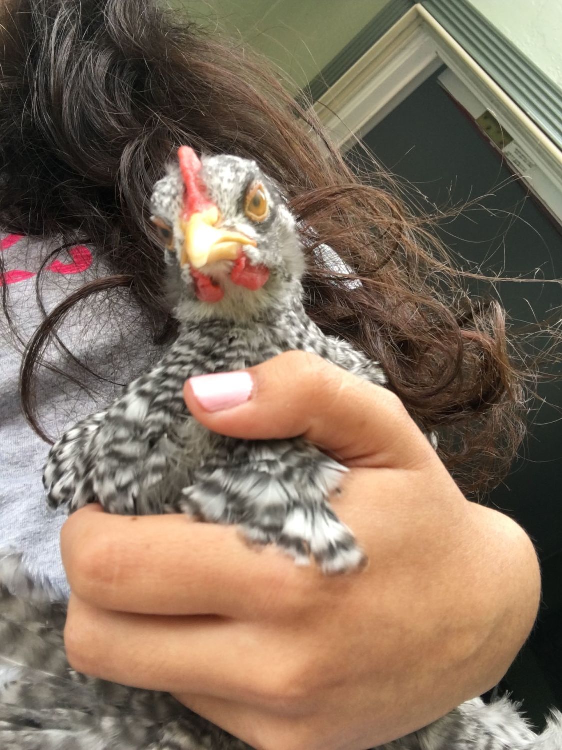 I think this is a barred rock mix but I'm not sure about his gender. Does anyone know?