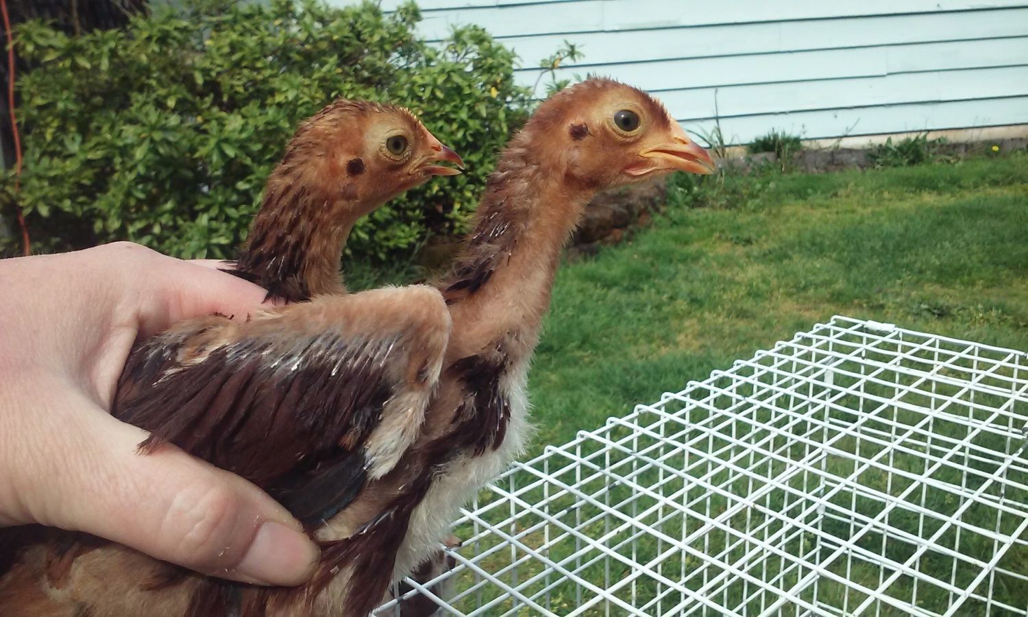 And my 2 naked necks... We are totally trying a crowing collar on the brown one if its he because it is so friendly. : (