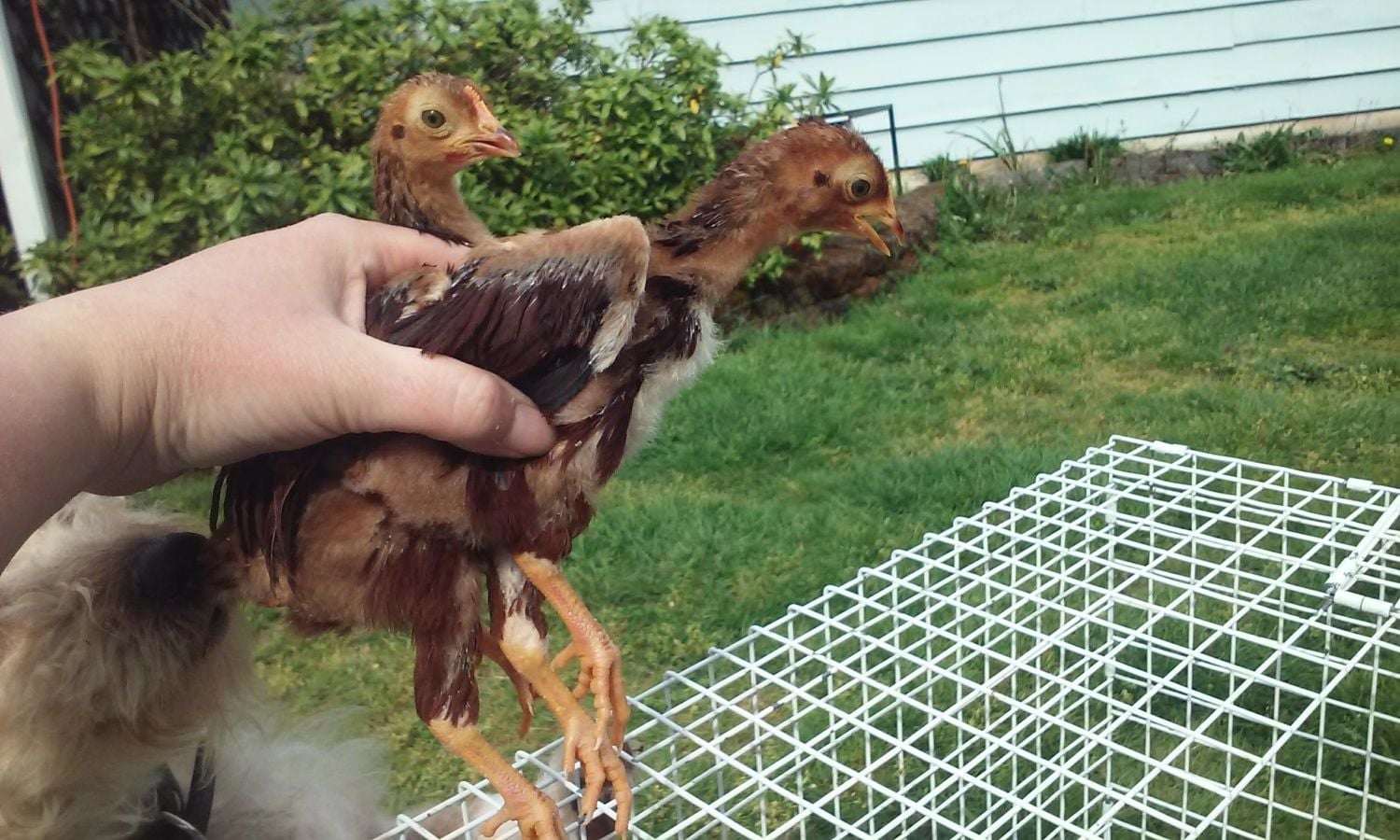My chicks r 7 weeks old now I asked for your help before but I have better outside pics now the white one is the chick in ?