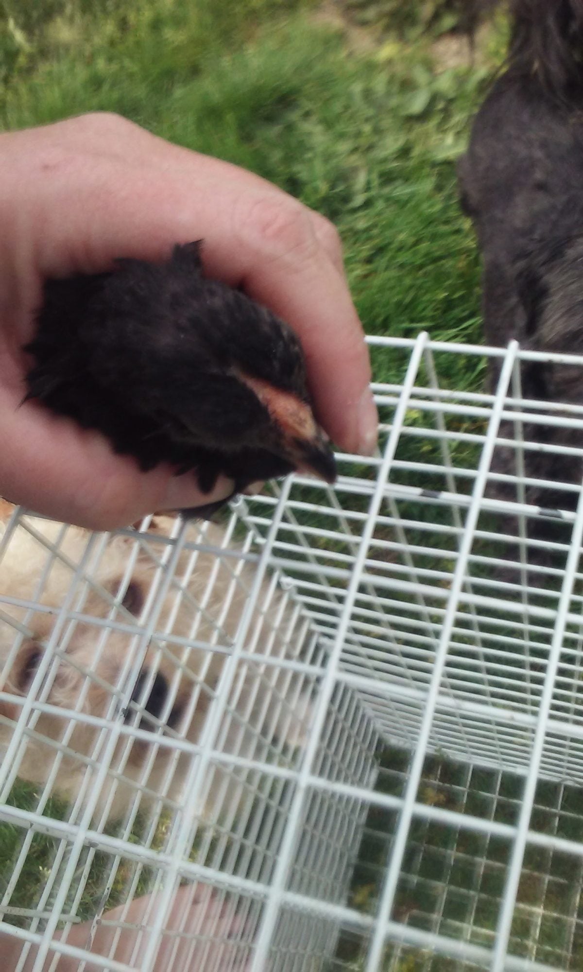 A 5 week old black d'anvers: