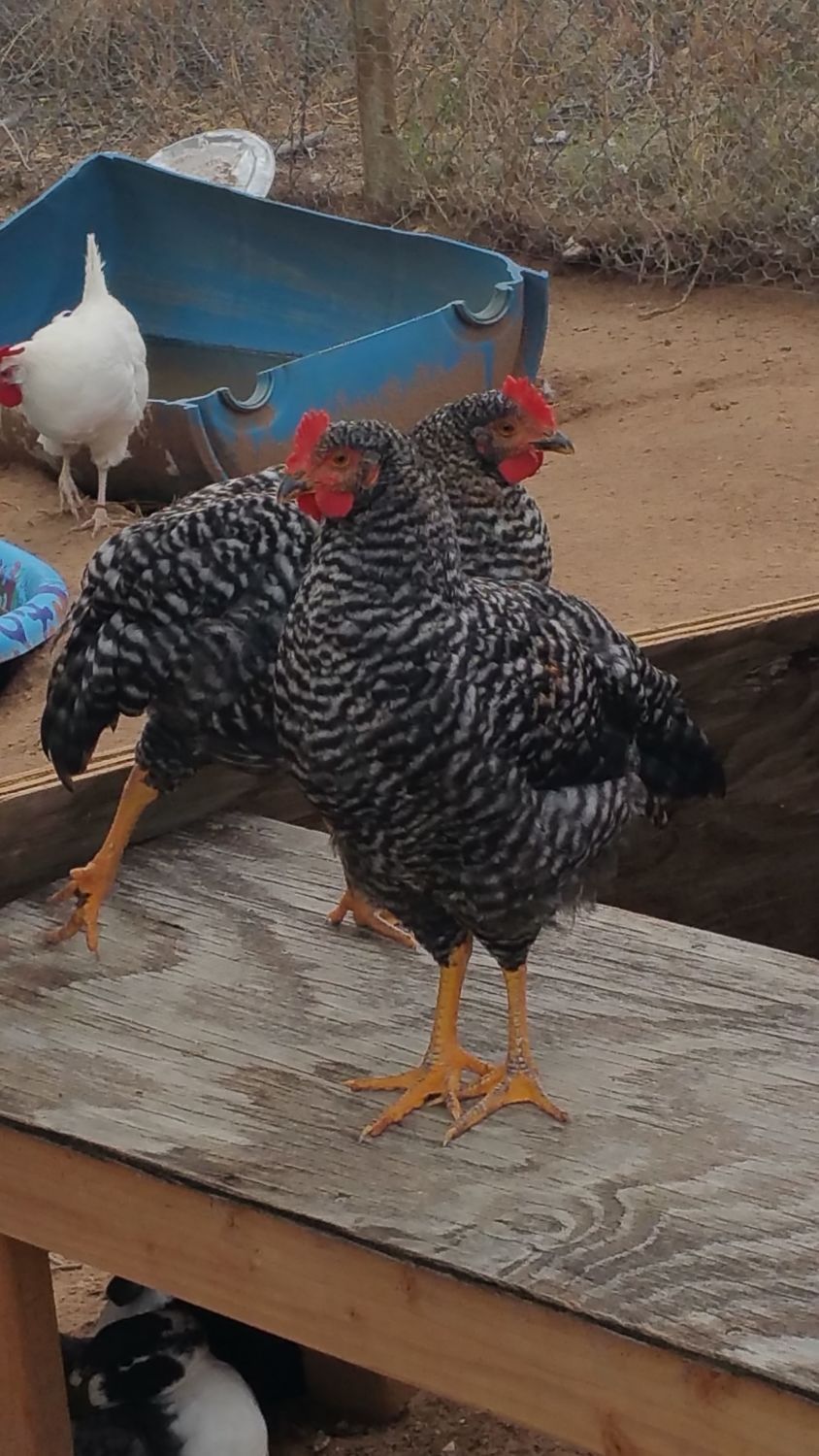 7.5 weeks. Newbie and two out of my four "pullets" turned out to be Roos so I'm very nervous about any combs and wattles. These 2 do not have roo posture or behavior.
