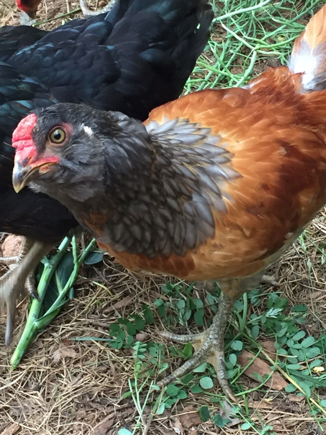 The black one is not a Black sex-link, since it is smaller I think it maybe a bantam of some sort. It is also a definite rooster. Also the Black one with brown around its neck is the Black sex-link, the Orpington is the yellow one, and your "Ameraucana" is most likely an Easter Egger.Hi - I am new the forum and wondered if someone could shed an opinion on if this chick may possibly be a cockerel.