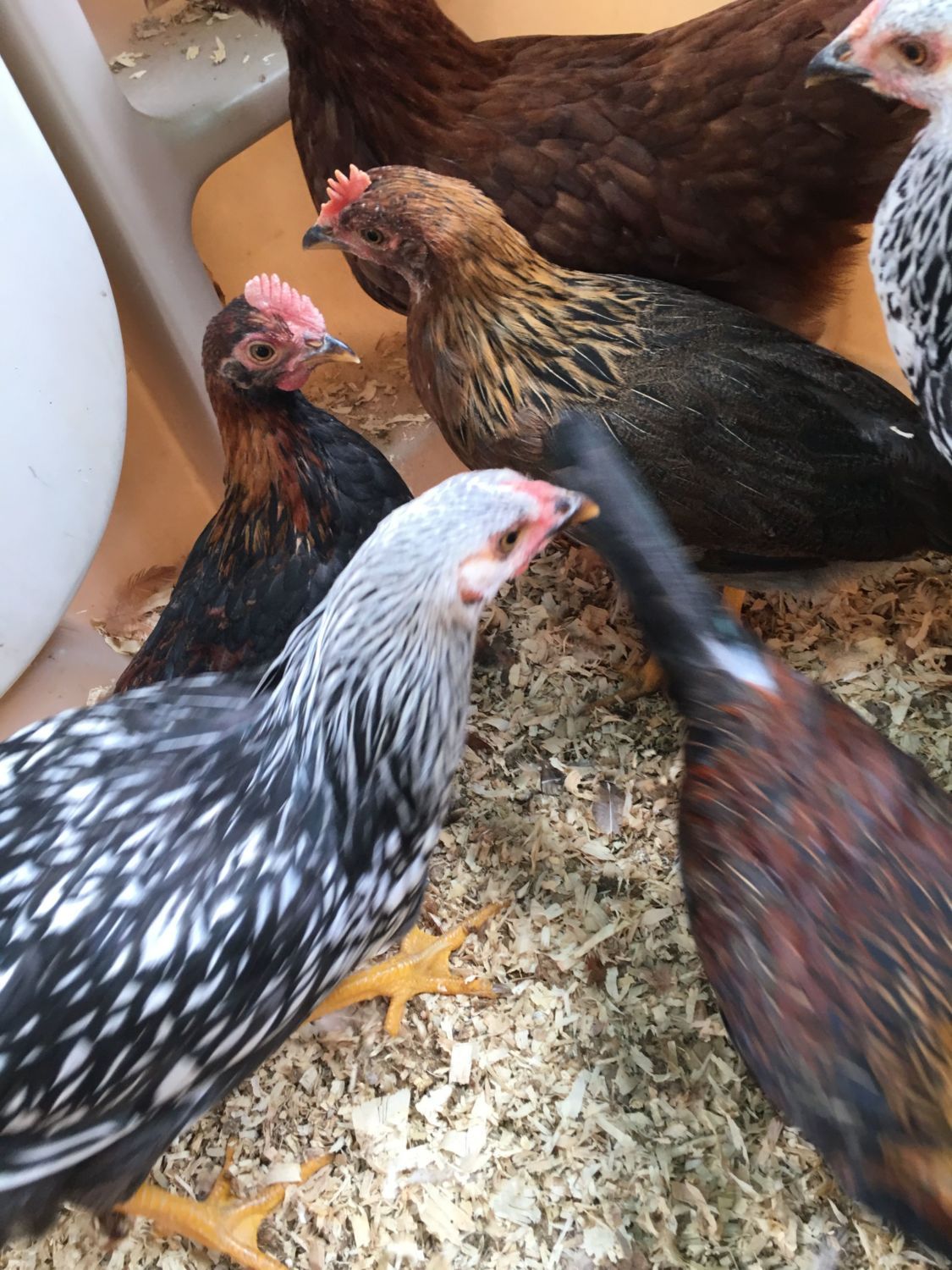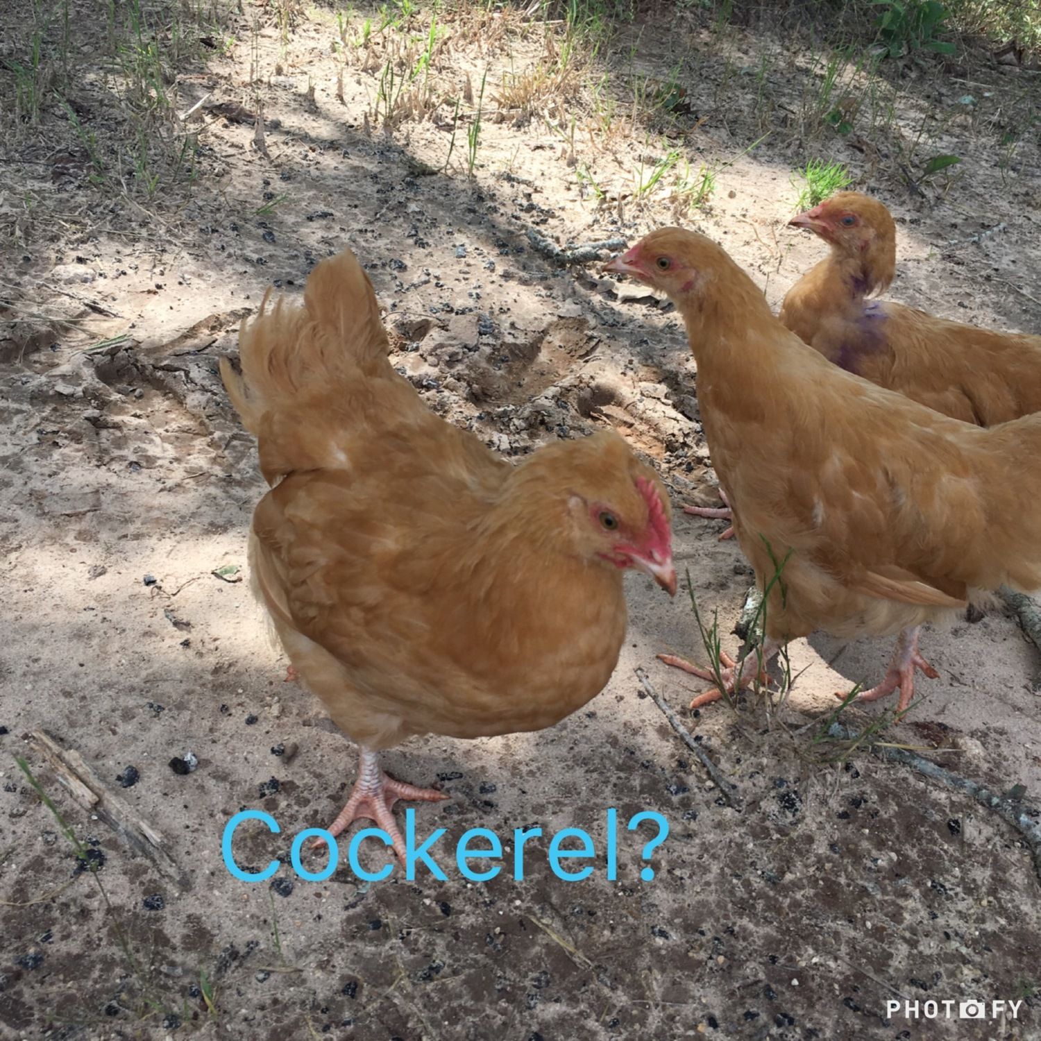 Cookie looks like a pullet but Bambi and Sprinkles look like cockerels.